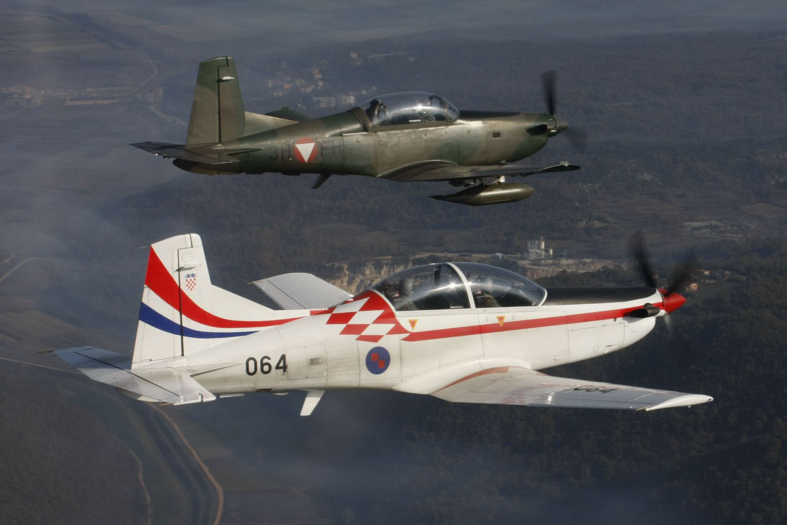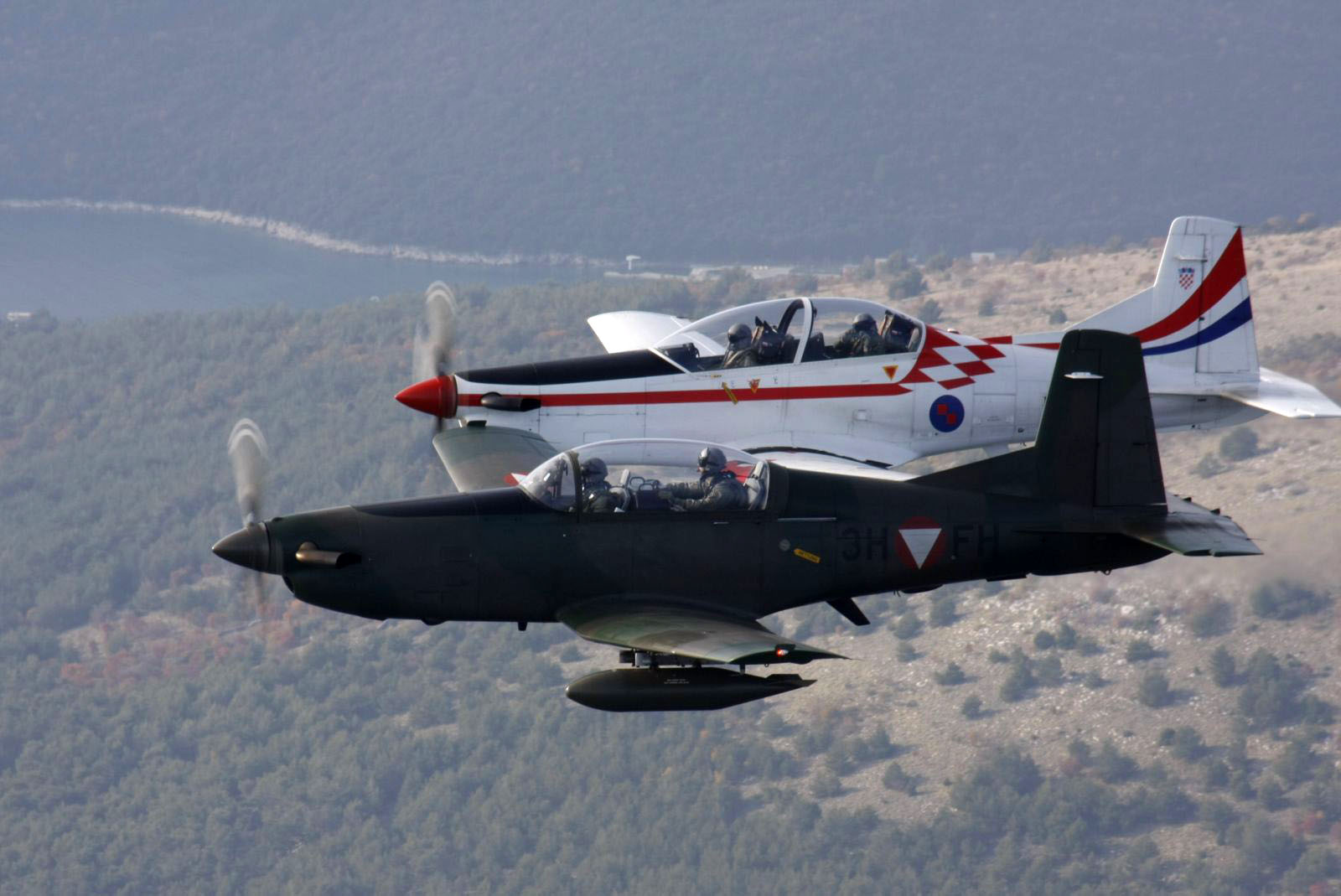 Deset pilota i dva zrakoplovna tehničara Pilotske škole austrijskog ratnog zrakoplovstva iz Zeltwega sa šest aviona Pilatus PC-7 sletjelo je 22. studenoga 2011. u vojarnu "Zemunik" u dvodnevni radni posjet Eskadrili aviona (EA) 93. zrakoplovne baze HRZ i PZO-a.