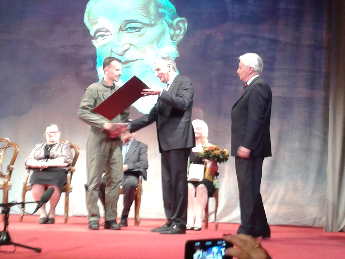 Nagradu je uručio župan Nikola Dobroslavić na svečanoj sjednici skupštine povodom Dana županije i blagdana njezina zaštitnika sv. Leopolda Bogdana Mandića, a priznanje je primila posada helikoptera Mi-8 MTV u sastavu: