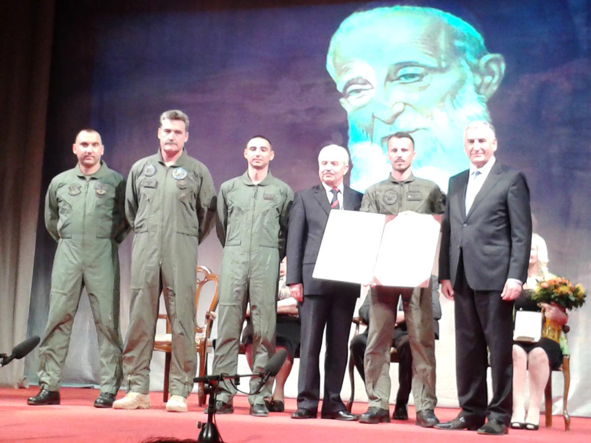 zamjenik zapovjednika ETH satnik Stjepan Jović, kopilot helikoptera MI-8 MTV natporučnik Goran Jelić te tehničari letači nadnarednik Mate Labrović i stožerni narednik Velimir Besic. Dodjeli nagrade nazočio je i zapovjednik 93. zb pukovnik Karol Lučan.