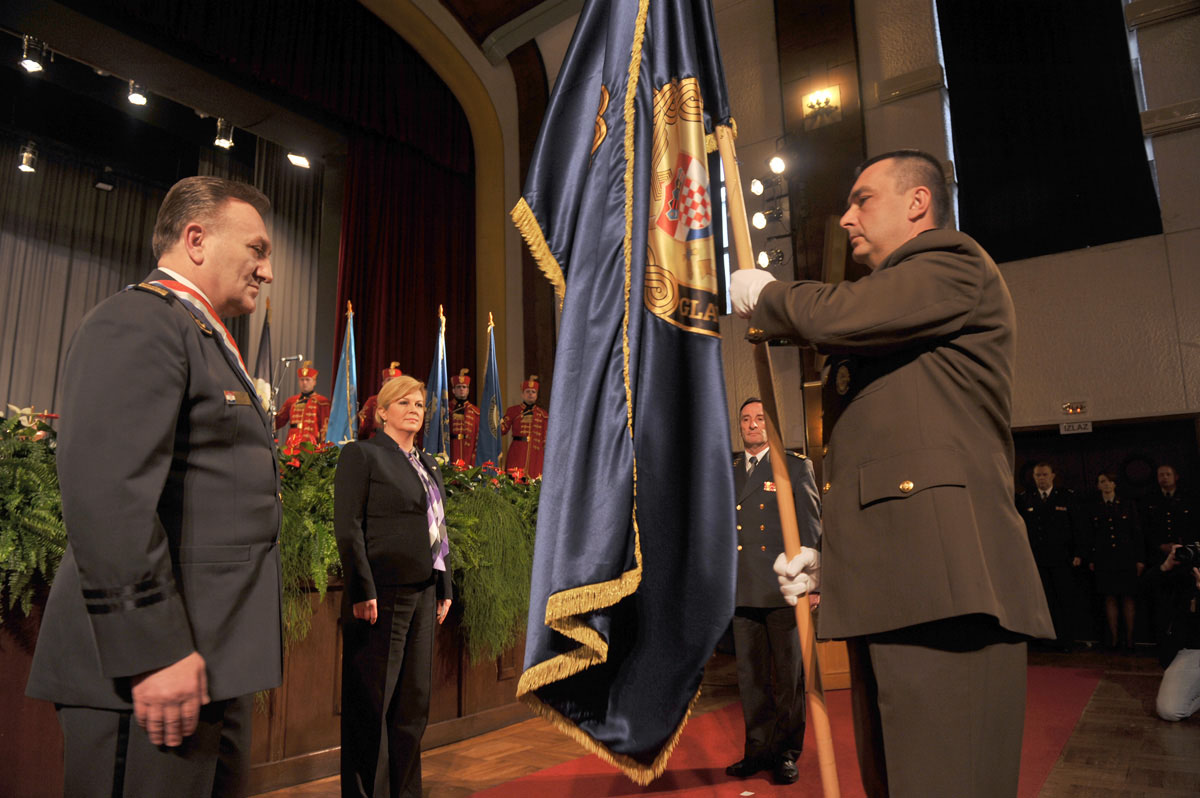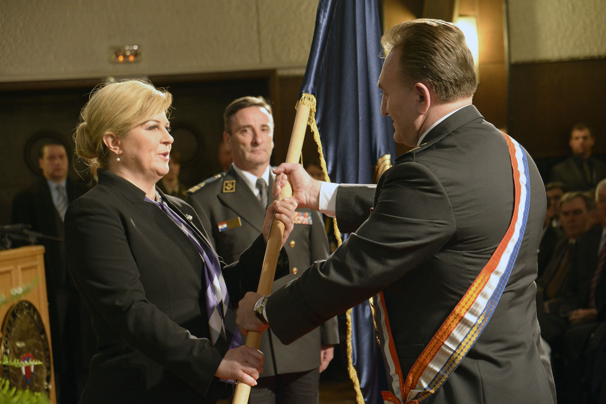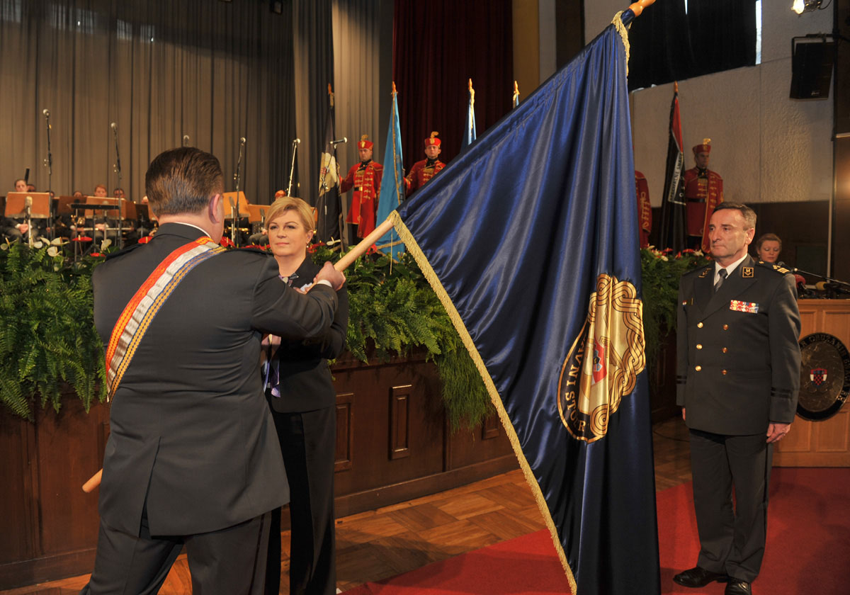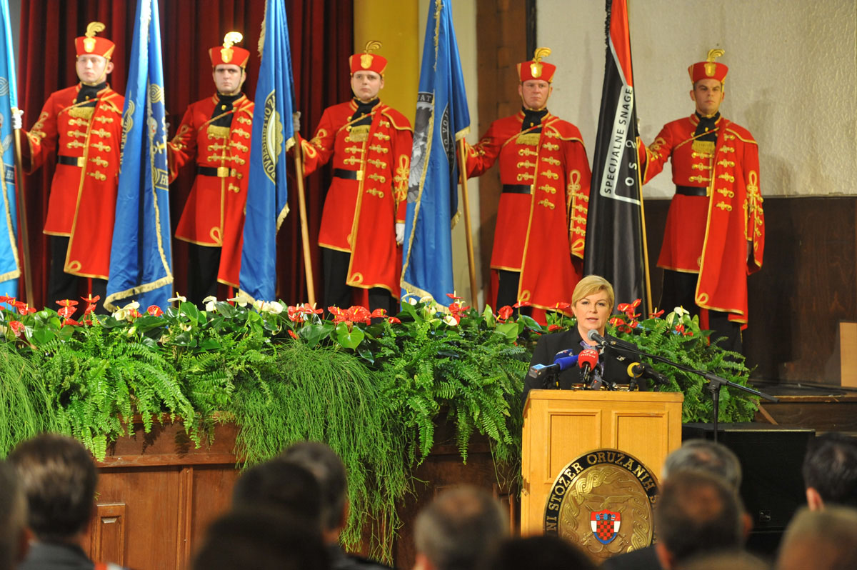 Naglasila je kako su naše Oružane snage završile proces integracije u NATO u samo tri i pol godine od stupanja RH u članstvo Saveza. Pripadnici Oružanih snaga RH potvrdili su spremnost za sudjelovanje u međunarodnim misijama i operacijama potpore miru u kojima su dokazali svoju profesionalnost, obučenost i predanost u izvršavanju svojih zadaća te na taj način predstavili Republiku Hrvatsku na međunarodnom planu. Također, posebno je istaknula kao su Oružane snage proteklih godina ojačale sposobnosti za pomoć civilnom stanovništvu, u prevenciji i otklanjanju elementarnih nepogoda, hitnog medicinskog prevoženja i akcija traganja i spašavanja na kopnu i na moru.