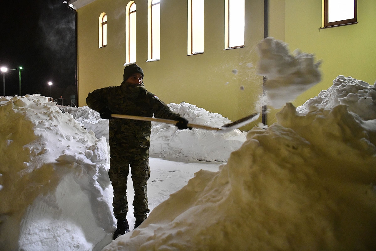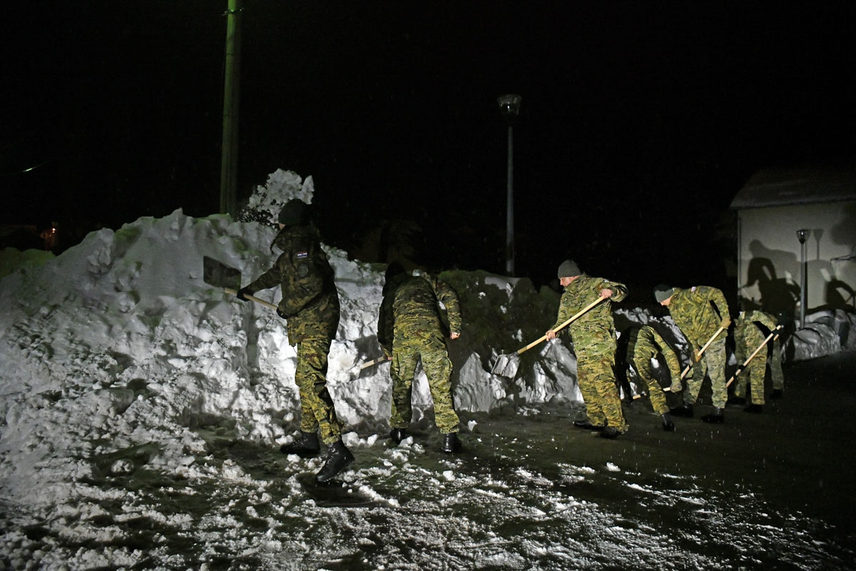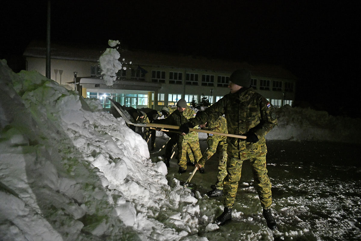 Podsjetimo, zbog obilnih snježnih oborina potpredsjednik Vlade i ministar obrane RH Damir Krstičević jučer, 22. veljače 2018. donio je odluku da se Hrvatska vojska u skladu sa svojim mogućnostima uključi u otklanjanje posljedica snježnog nevremena tamo gdje je to prema procjenama nadležnih civilnih institucija najpotrebnije.Tako je tijekom jučerašnjeg dana Hrvatska vojska bila angažirana na području Gospića (20 pripadnika OS RH), u mjestu Čanak kod Korenice (20 pripadnika OS RH i 1 kombinirka), te u Donjem Lapcu (40 pripadnika OS RH, 1 kombinirka i 3 inženjerijska stroja).