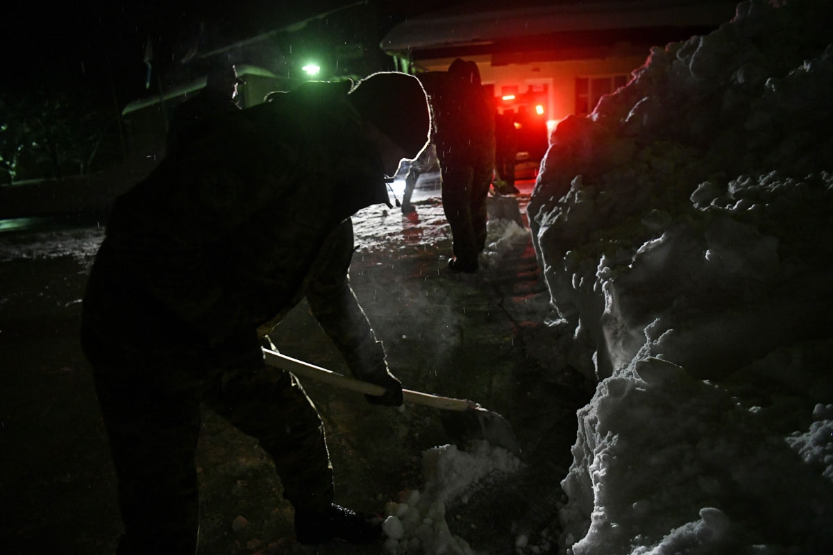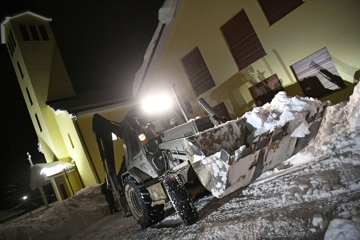 U Donjem Lapcu 25 pripadnika s jednim strojem čiste prilaze javnim ustanovama. U ispomoć su im upućene još dvije kombinirke.