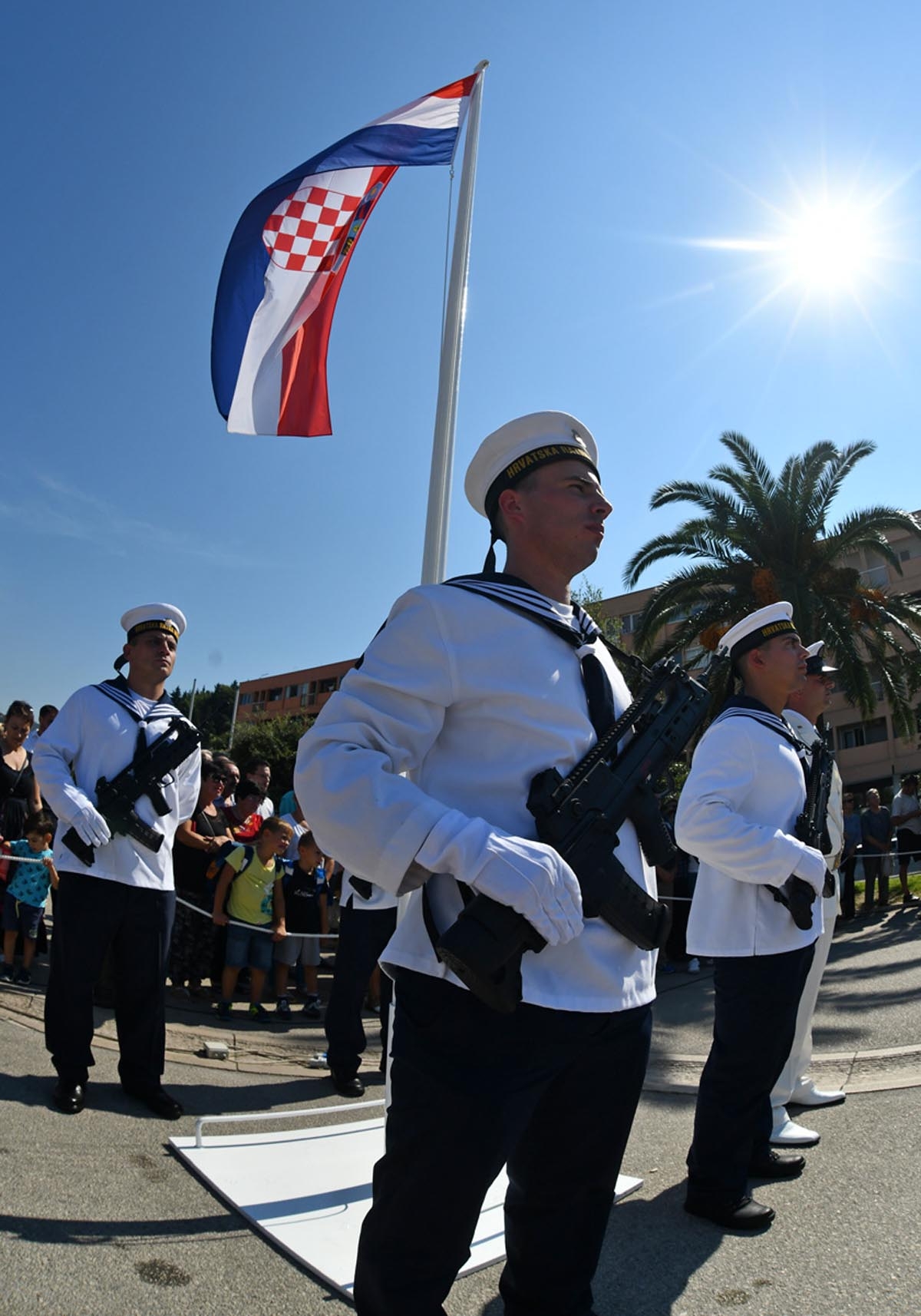 Nakon pregleda svečanog postroja čestitke na 27. obljetnici pripadnicima HRM uputila je predsjednica RH i vrhovna zapovjednica OS RH Kolinda Grabar-Kitarović istaknuvši kako Hrvatska ratna mornarica ponosno nastavlja dugu tradiciju hrvatskog pomorstva. "Hrvati su cijelu svoju povijest polagali u razvoj mornarice, a na našem moru branili su se odavna hrvatski interesi", istaknula je Predsjednica podsjetivši na slavne dane 1991. godine, kada su pripadnici HRM-a pokazali hrabrost i nesalomljivi duh, kao i na obrambene vojne operacije vođene na ovom prostoru te je osobitu zahvalnost uputila hrvatskim braniteljima, pripadnicima HRM-a koji su za hrvatsku slobodu položili svoje živote.