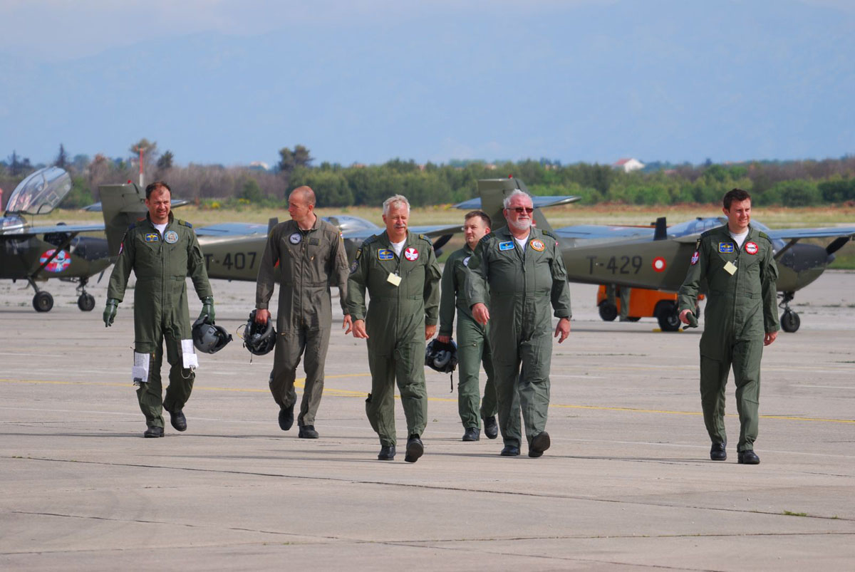 Tijekom posjeta danskog izaslanstva, predvođenog zapovjednikom Pilotske škole pukovnikom F.S. Rasmussenom, razmijenjena su iskustava u školovanju pilota, a jedna od zajedničkih aktivnosti bilo je i letenje danskih i hrvatskih pilota u navigaciji i grupi na školskim avionima, gdje su posade bile izmješane, te letenje danskih pilota sa Akro-grupom „Krila Oluje“.