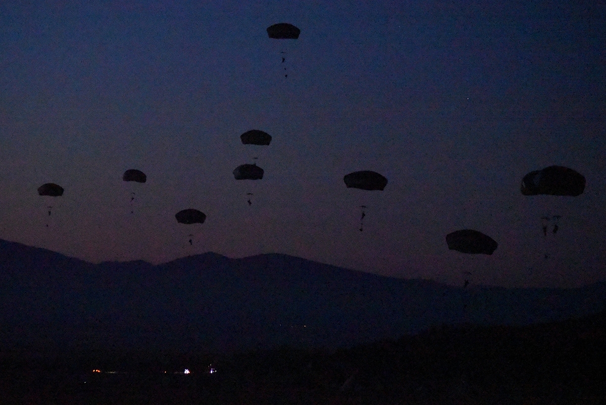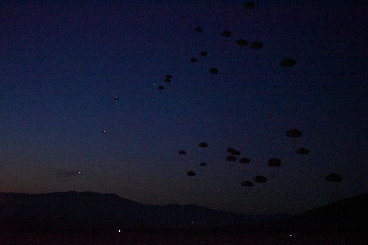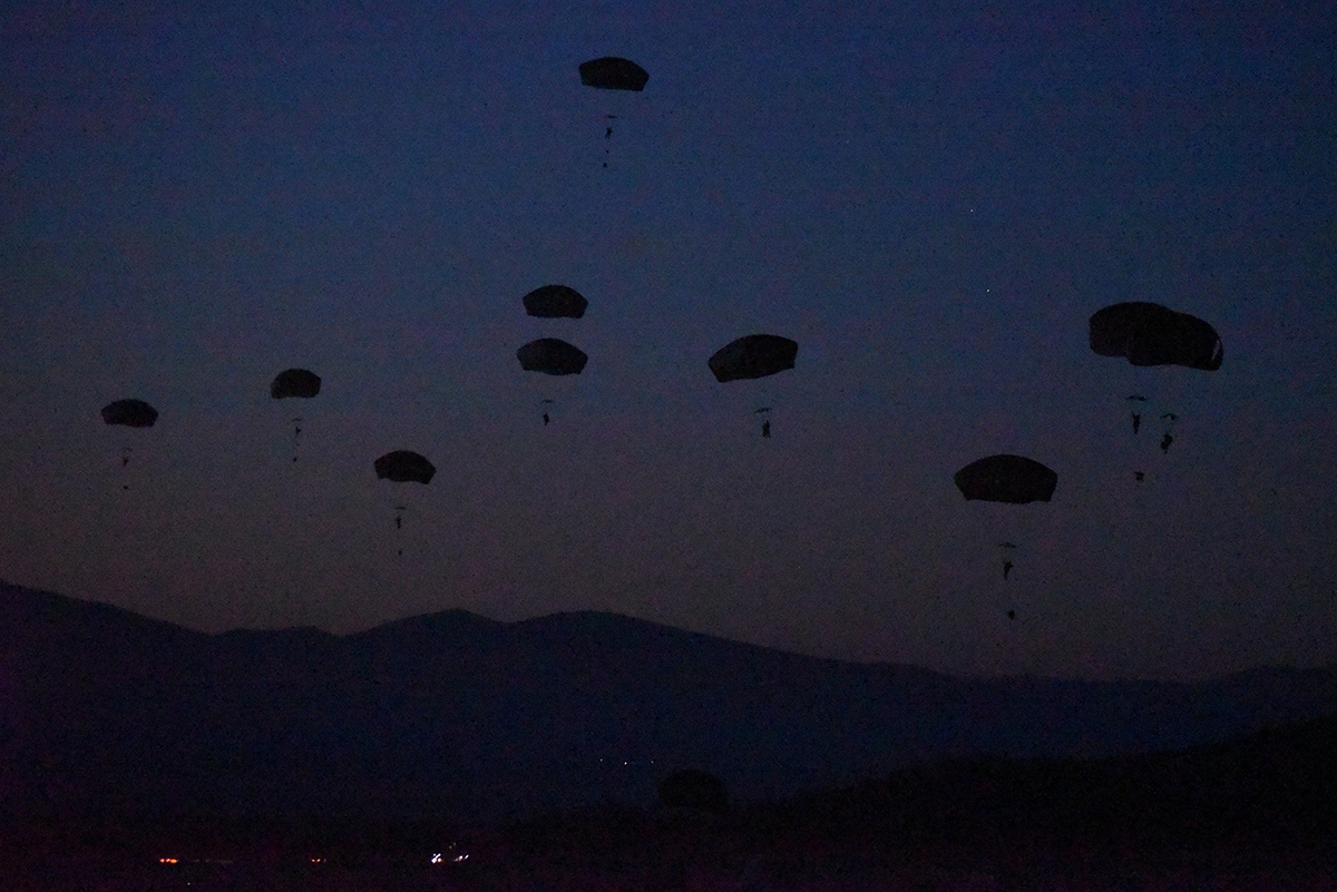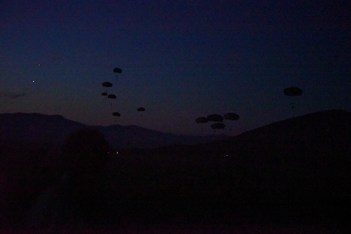 U sklopu međunarodne vojne vježbe ''SERRATED EDGE'' izvršen padobranski desant snaga na prostor vojarne "Josip Jović" u Udbini