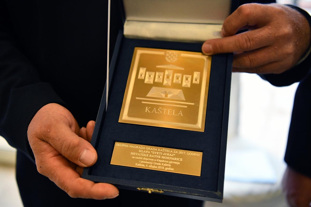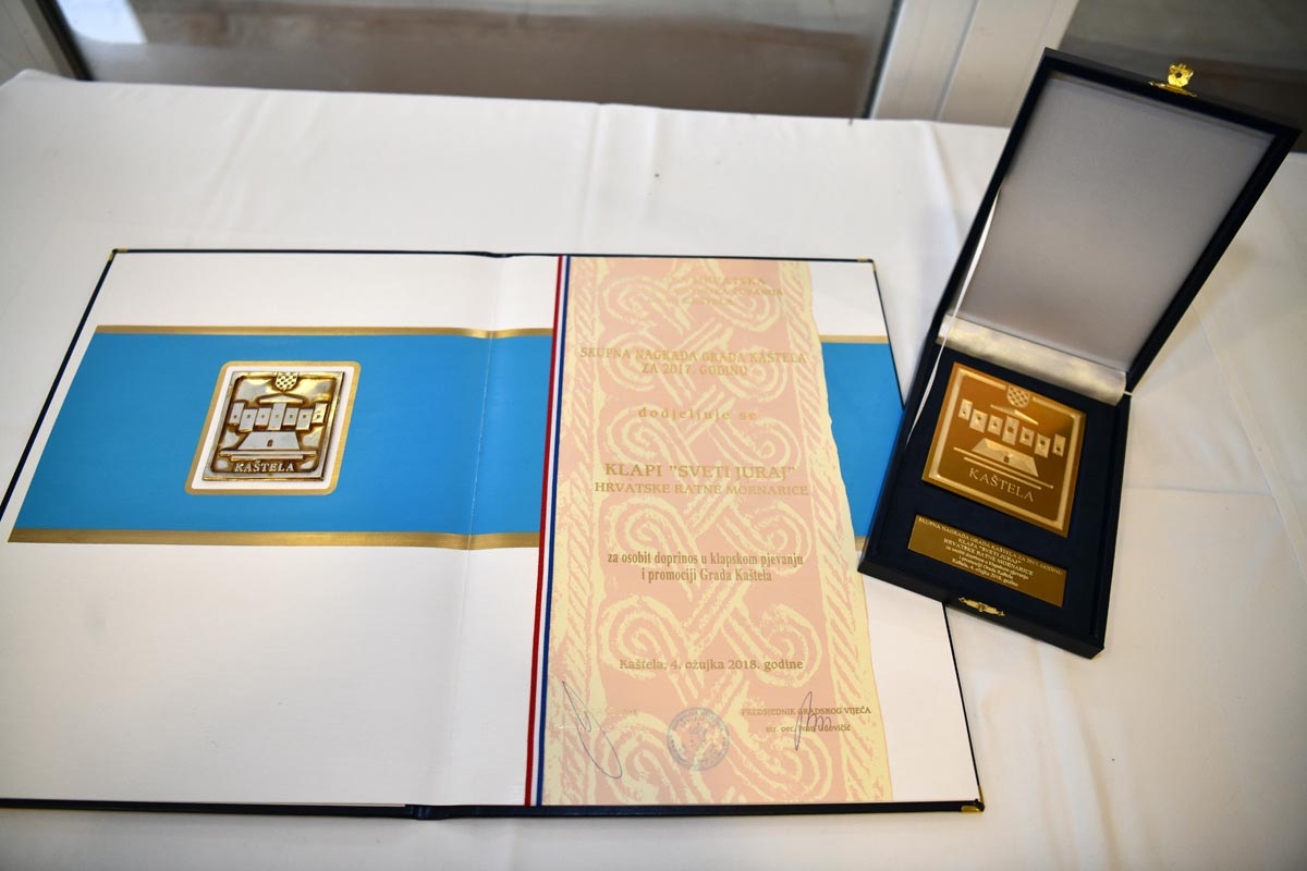 Klapa sv. Juraj Hrvatske ratne mornarice dobitnik je nagrade grada Kaštela za osobit doprinos u klapskom pjevanju te promociji grada.