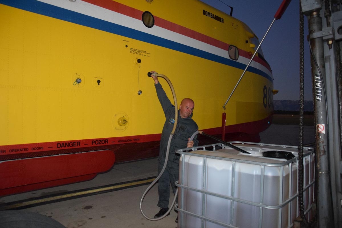 Uz letačke posade i kopnene snage Hrvatske vojske, veliku ulogu u osiguravanju visokog stupnja ispravnosti tehnika imaju i zrakoplovni tehničari i drugi timovi u opsluživanju letenja koji su sinoć do kasno u noć pripremali avione za nove akcije gašenja požara.