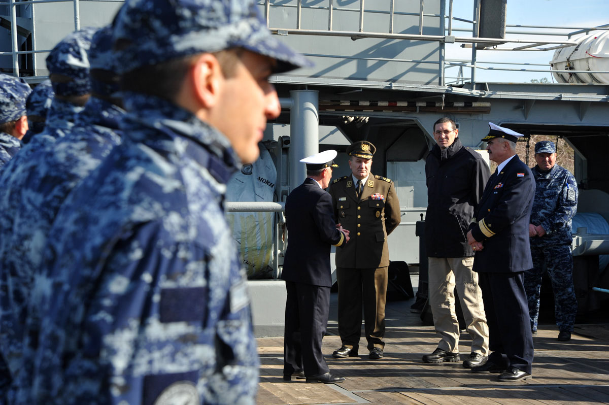 Ministar obrane Ante Kotromanović u pratnji načelnika GS OSRH-a general pukovnika Drage Lovrića posjetio je danas, u petak, 17. veljače Hrvatsku ratnu mornaricu.