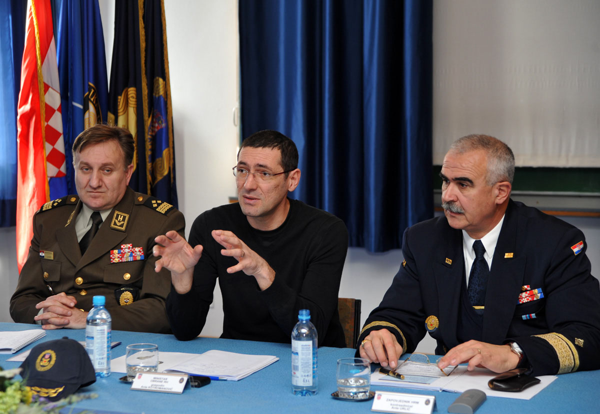 Nakon što je paljenjem svijeće u Spomen sobi odao počast poginulim pripadnicima HRM-a održao je sastanak sa zapovjednikom HRM-a kontraadmiralom Antom Urlićem i njegovim najbližim suradnicima.