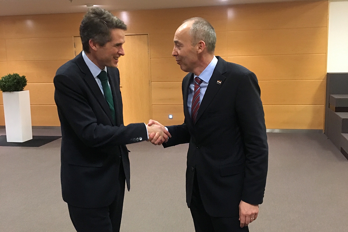 Ministar Krstičević je razgovarao i s Gavinom Williamsonom, ministrom obrane Ujedinjene kraljevine Velike Britanije i Sjeverne Irske. Ministar Krstičević je istaknuo zadovoljstvo rastućom suradnjom oružanih snaga dviju država koja je dobila zamah nakon prošlogodišnjeg sklapanja sporazuma o razumijevanju dvaju ministarstava. Ministri su se osvrnuli na skori dolazak britanskih vojnih brodova, kraljevskih marinaca te borbenih zrakoplova "Typhoon" u Republiku Hrvatsku. Dogovoren je njihov bilateralni susret u najskorije vrijeme. Također ministri su razmijenili mišljenja o sigurnosnom stanju s posebnim osvrtom na područje jugoistočne Europe.
