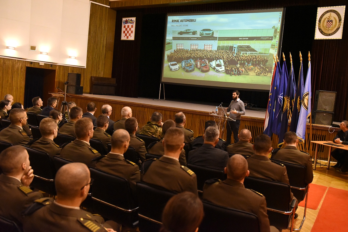 Hrvatski inovator i uspješan poduzetnik Mate Rimac održao je u ponedjeljak, 2. prosinca 2019. predavanje kadetima Hrvatske vojske na Hrvatskom vojnom učilištu “Dr. Franjo Tuđman” u Zagrebu.