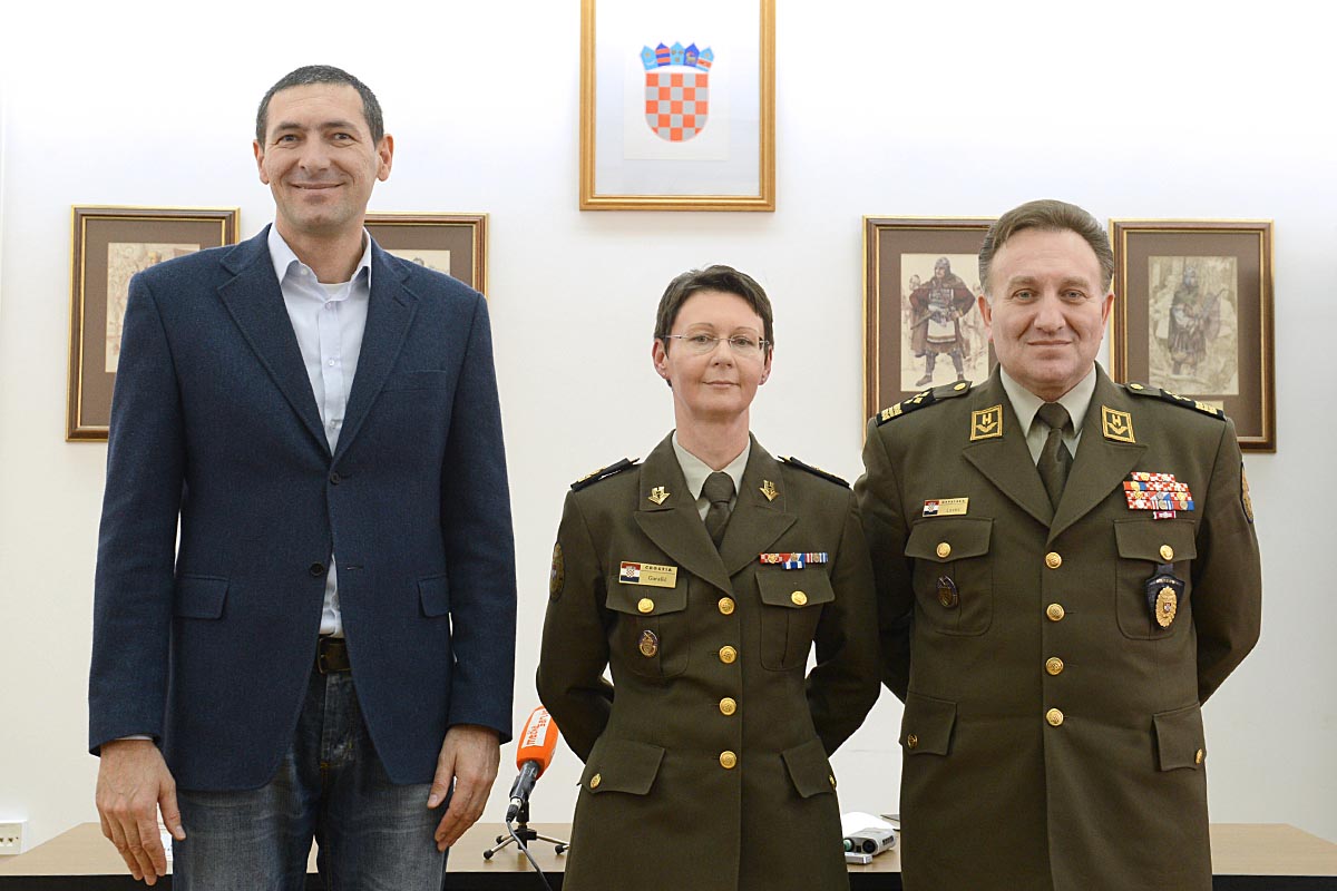 Povodom dodjele privremenog čina brigadne generalice Gordani Garašić danas, 4. travnja 2014., održana je konferencija za medije u sjedištu Ministarstva obrane RH u Zagrebu.