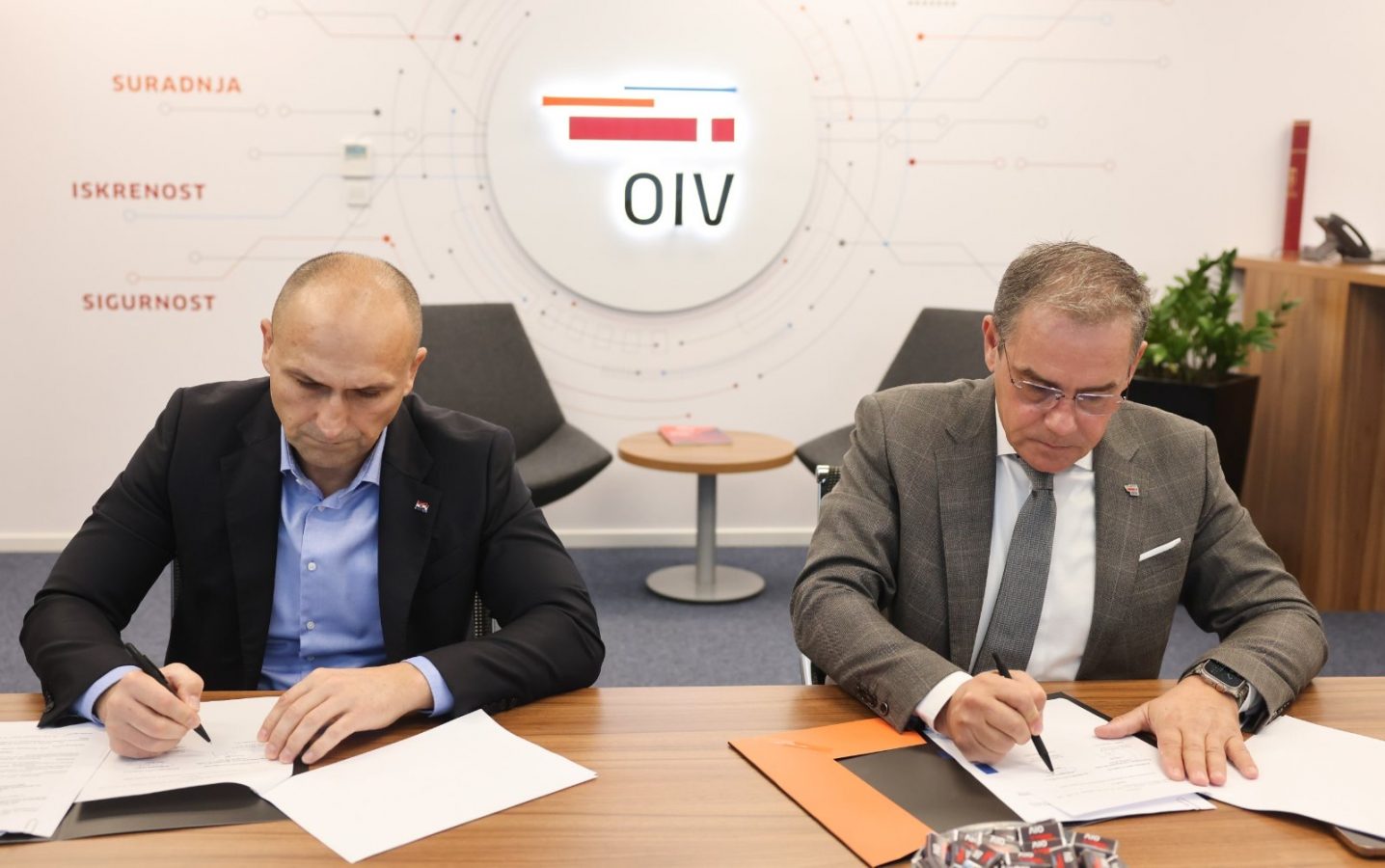 Potpredsjednik Vlade Republike Hrvatske i ministar obrane Ivan Anušić i predsjednik Uprave tvrtke Odašiljači i veze Mate Botica potpisali su danas, 8. listopada 2025., Sporazum o suradnji na razvoju borbenog komunikacijskog sustava Hrvatskog ratnog zrakoplovstva između Ministarstva obrane i tvrtke Odašiljači i veze.