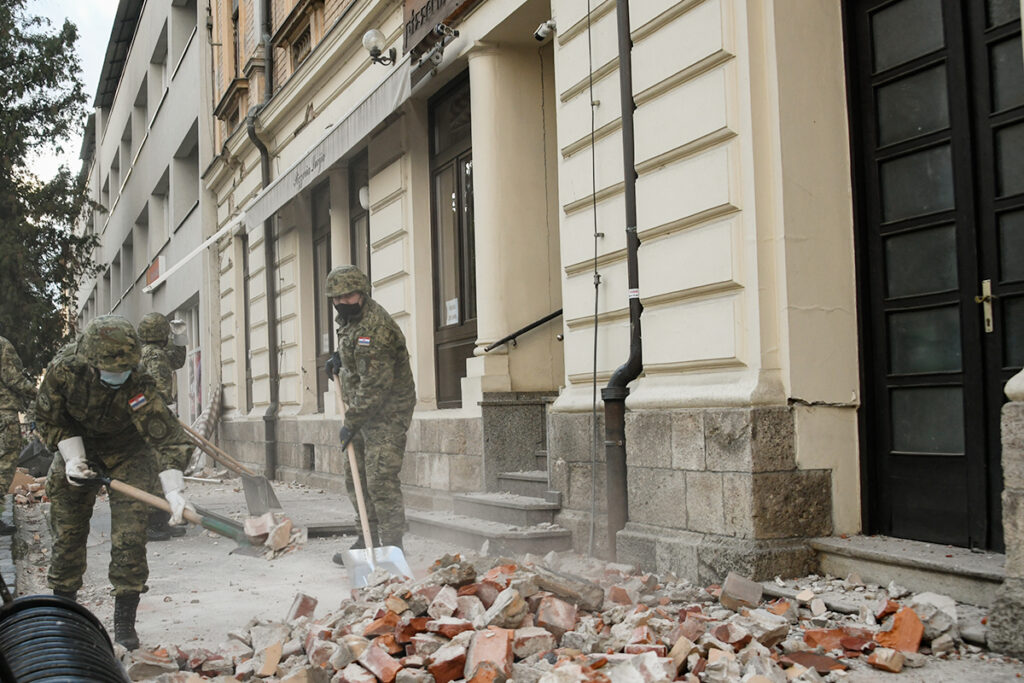 “Angažirano je 190 pripadnika Hrvatske kopnene vojske, s pripadajućom mehanizacijom Inženjerijske pukovnije HkoV-a, koji raščišćavaju prometnice i javne površine u užem centru grada Petrinje i odvoze urušene dijelove građevina. Tijekom dana pripadnici Hrvatske kopnene vojske izvršili su evakuaciju 150 korisnika Doma za stare i nemoćne osobe u Petrinji te ih prevezli u vojarnu gdje im je osiguran privremeni smještaj. U vojarni u Petrinji planiran je smještaj ukupno do 500 ljudi”, rekao je načelnik Hranj. Također, sukladno zahtjevu stožera Civilne zaštite, planirano je podizanje šatora i angažiranje elektroagregata iz sastava Zapovjedništva za potporu.