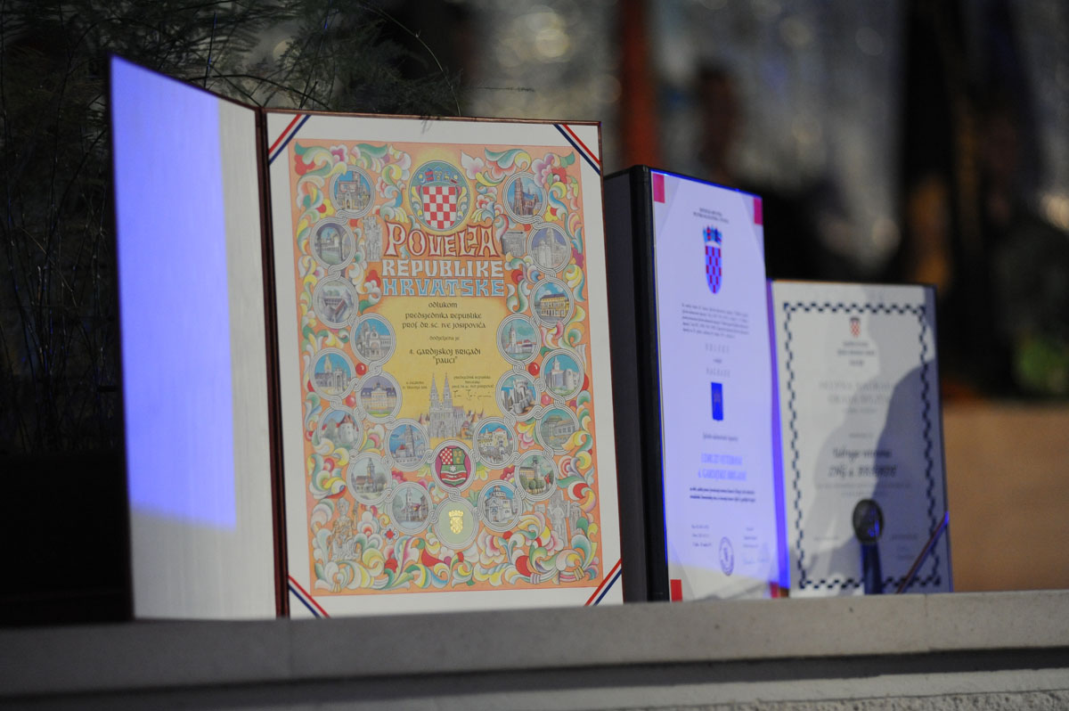 Na kraju svečane akademije, pripadnici 4. gbr dodijelili su zahvalnice predsjedniku RH, Ivi Josipoviću i predsjednici Vlade, Jadranki Kosor te ih uručili njihovim izaslanicima.
