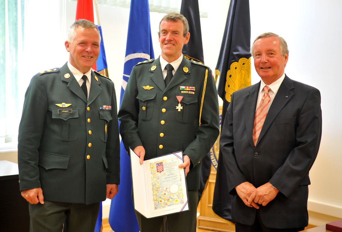 Također, ministar Božinović je prigodom kraja mandata u RH pukovniku Knudsenu uručio i odlikovanje Red hrvatskog trolista, a koje mu je predsjednik Republike Ivo Josipović dodijelio za izniman doprinos u razvoju i unapređenju bilateralne obrambene suradnje između Republike Hrvatske i Kraljevine Danske. U svom obraćanju ministar Božinović je istaknuo kako je pukovnik Knudsen tijekom svog mandata dao veliki doprinos u promoviranju i jačanju bilateralne suradnje između oružanih snaga dviju zemalja, a posebno na području logistike i upravljanja ljudskim resursima kroz donacije u različitim razvojnim projektima Oružanih snaga. "Pukovnik Knudsen je svojim doprinosom dokazao pravo prijateljstvo s Republikom Hrvatskom, i ova medalja je zahvala za njegov cjelokupni trud u jačanju bilateralnih odnosa dviju zemalja", istaknuo je ministar Božinović.
