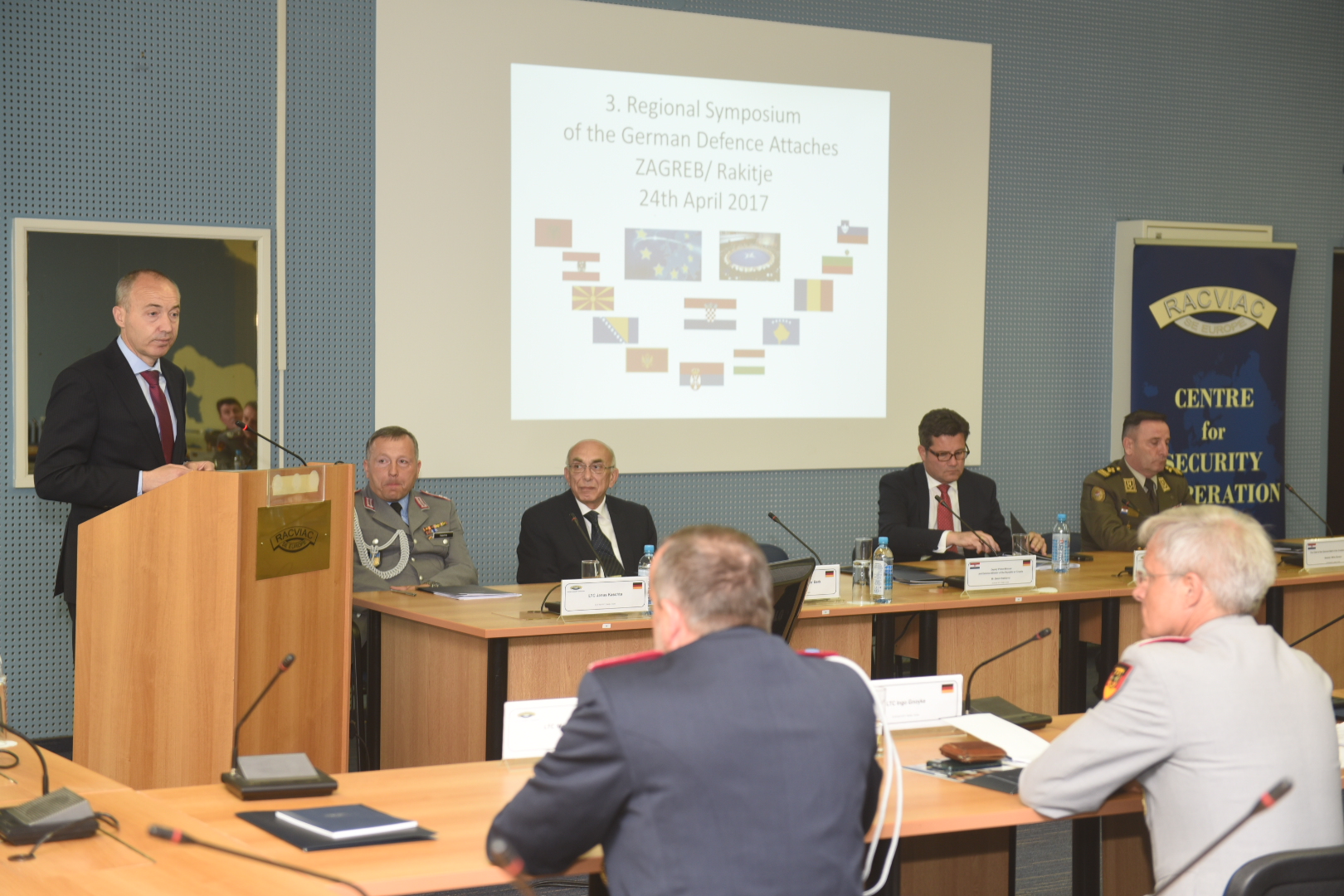 U vojarni „Vitez Damir Martić“ u Rakitju (RACVIAC- Središte za sigurnosnu suradnju) je danas, u ponedjeljak 24. travnja 2017., započeo dvodnevni simpozij o aktualnoj sigurnosno-političkoj situaciji u jugoistočnoj Europi pod nazivom „Balkansymposium“ koji je okupio vojne izaslanike Savezne Republike Njemačke iz regije.