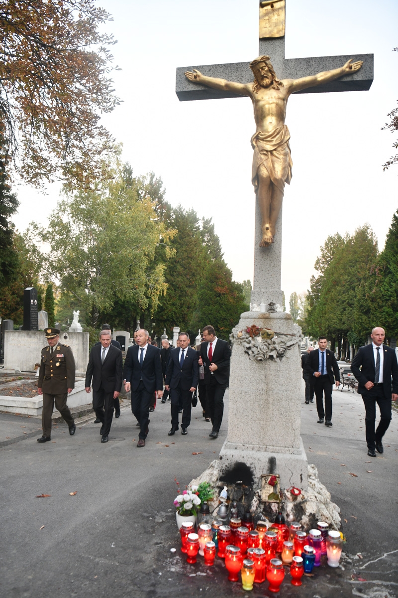 Ministar obrane Mađarske Tibor Benkő u pratnji izaslanstva stigao je u srijedu, 10. listopada 2018. u dvodnevni službeni posjet Republici Hrvatskoj i Ministarstvu obrane, a svoj posjet počeo je odavanjem počasti hrvatskim žrtvama Domovinskog rata i mađarskim vojnicima poginulim u 1. svjetskom ratu na Gradskom groblju Mirogoj u Zagrebu zajedno s potpredsjednikom Vlade i ministrom obrane RH Damirom Krstičevićem.Ministri obrane Hrvatske i Mađarske položili su vijence kod spomenika "Glas hrvatske žrtve - Zid boli" i spomenika poginulima u 1. svjetskom ratu te kod spomen-ploče mađarskim vojnicima poginulima u 1. svjetskom ratu, kao i na grobu prvog hrvatskog predsjednika Franje Tuđmana. Tim činom dvojica ministara obrane i umirovljenih generala prisjetili su se svih koji su žrtvovali svoje živote za svoj narod i svoju domovinu.
