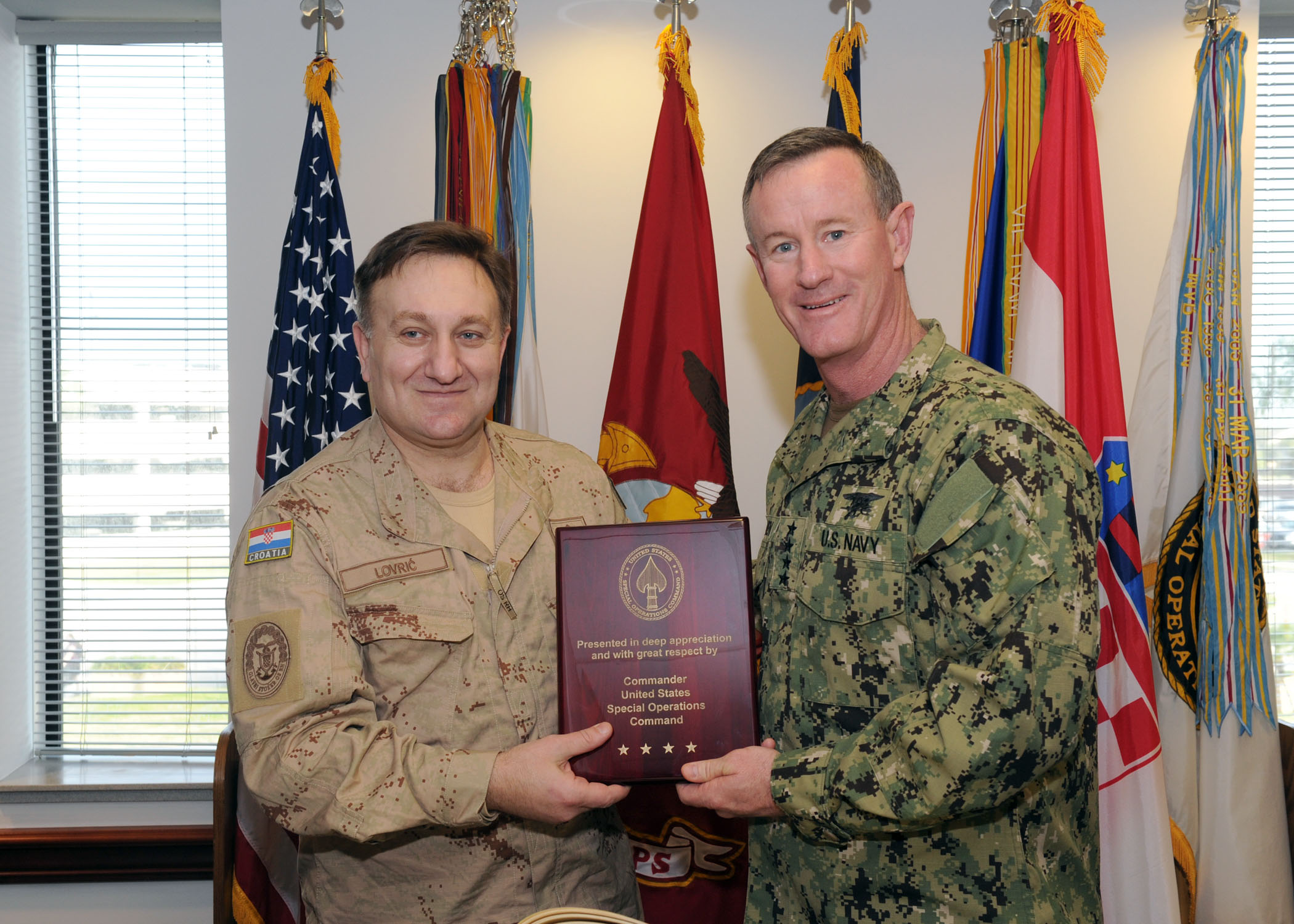 General Lovrić posjetio je i Zapovjedništvo za specijalne operacije Oružanih snaga SAD-a (USSOCOM) gdje se susreo sa zapovjednikom admiralom Williamom McRavenom. Taj službeni posjet potvrdio je visoku razinu vojne suradnje te prijateljske i partnerske odnose Oružanih snaga Republike Hrvatske i Sjedinjenih Američkih Država.