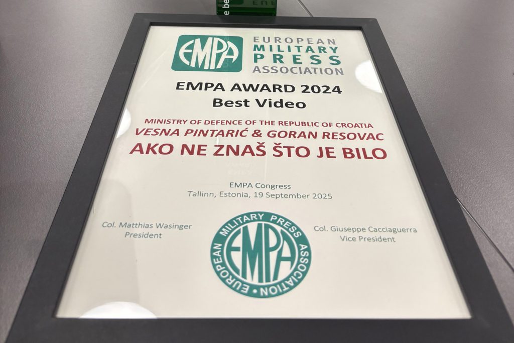 Na ovogodišnjem kongresu Europskog udruženja vojnih novinara (EMPA – European Military Press Association) koji se održavao od 15. do 19. rujna 2025. u Tallinnu u Estoniji, video “Ako ne znaš šta je bilo”, u produkciji djelatnika Službe za strateško komuniciranje i digitalne medije Ministarstva obrane osvojio je nagradu za najbolji video uradak u protekloj godini.