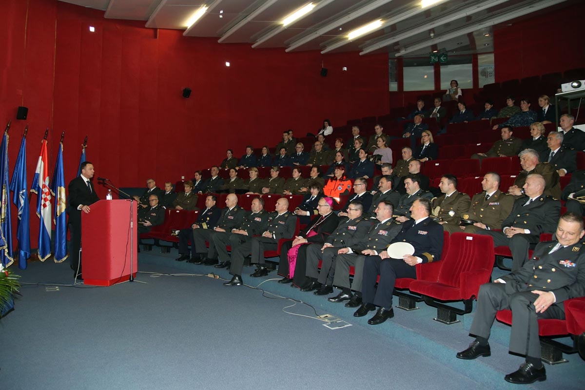 Zapovjednik Vojnog zdravstvenog središta brigadir Mario Dadić osvrnuo se na najvažnije zadaće u protekloj godini, istaknuvši doprinos Vojnog zdravstvenog središta međunarodnoj sigurnosti kroz sudjelovanje u operacijama potpore miru, sudjelovanja u međunarodnim vojnim vježbama, potporu civilnim institucijama te predstojeće izazove u ovoj godini. Posebno je istaknuo važnosti Hitnog zračnog medicinskog prijevoza, u kojem je VZS najvažnija karika, kao i barokomoru Zavoda za pomorsku medicinu kao jedinu takve vrste u južnoj Hrvatskoj, ukazavši na njezin značaj u spašavanju ljudskih života. "Ono čime se najviše ponosimo ipak nisu brojevi i rezultati, već ljudski potencijal jedinstven u OSRH, kao najveća snaga naše postrojbe i najvažniji resurs za daljnji razvoj ne samo VZS-a, nego i zdravstvene službe OSRH u cjelini", zaključio je brigadir Dadić.
