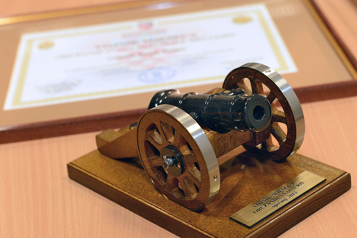 Načelnik Glavnog stožera Oružanih snaga RH general zbora Drago Lovrić u pratnji prvog dočasnika OS RH časničkog namjesnika Davora Peteka, u utorak, 17. veljače 2015., primio je i uručio priznanja najboljem vojniku i dočasniku OS RH za siječanj 2015. godine.