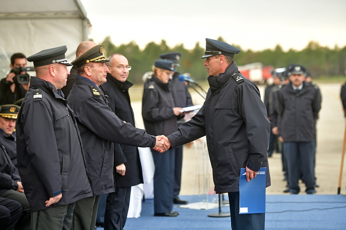 Ministar je zahvalio svim pilotima i zrakoplovnim tehničarima za doprinos sustavu sigurnosti i istaknuo kako je nakon 28 godina postignut veliki pomak u sposobnostima i kapacitetima HRZ-a. “U mandatu ove Vlade u sastav Hrvatskog ratnog zrakoplovstva ušli su helikopteri Kiowa Warrior koji su dostigli punu operativnu sposobnost, remontirani su helikopteri Mi-171Sh, a uskoro dolaze i moćni američki helikopteri “Crni Jastreb”. Upravo je jučer Vlada donijela odluku kojom se prihvaća donacija dva helikoptera “Crni Jastreb” te kojom kupujemo dodatna dva helikoptera, uz svu potrebnu obuku i logističku potporu”, naglasio je ministar i najavio nastavak izgradnje jačeg Hrvatskog ratnog zrakoplovstva.