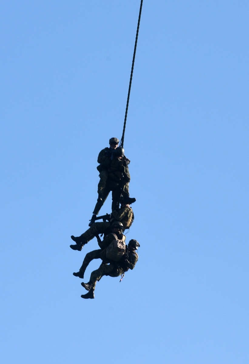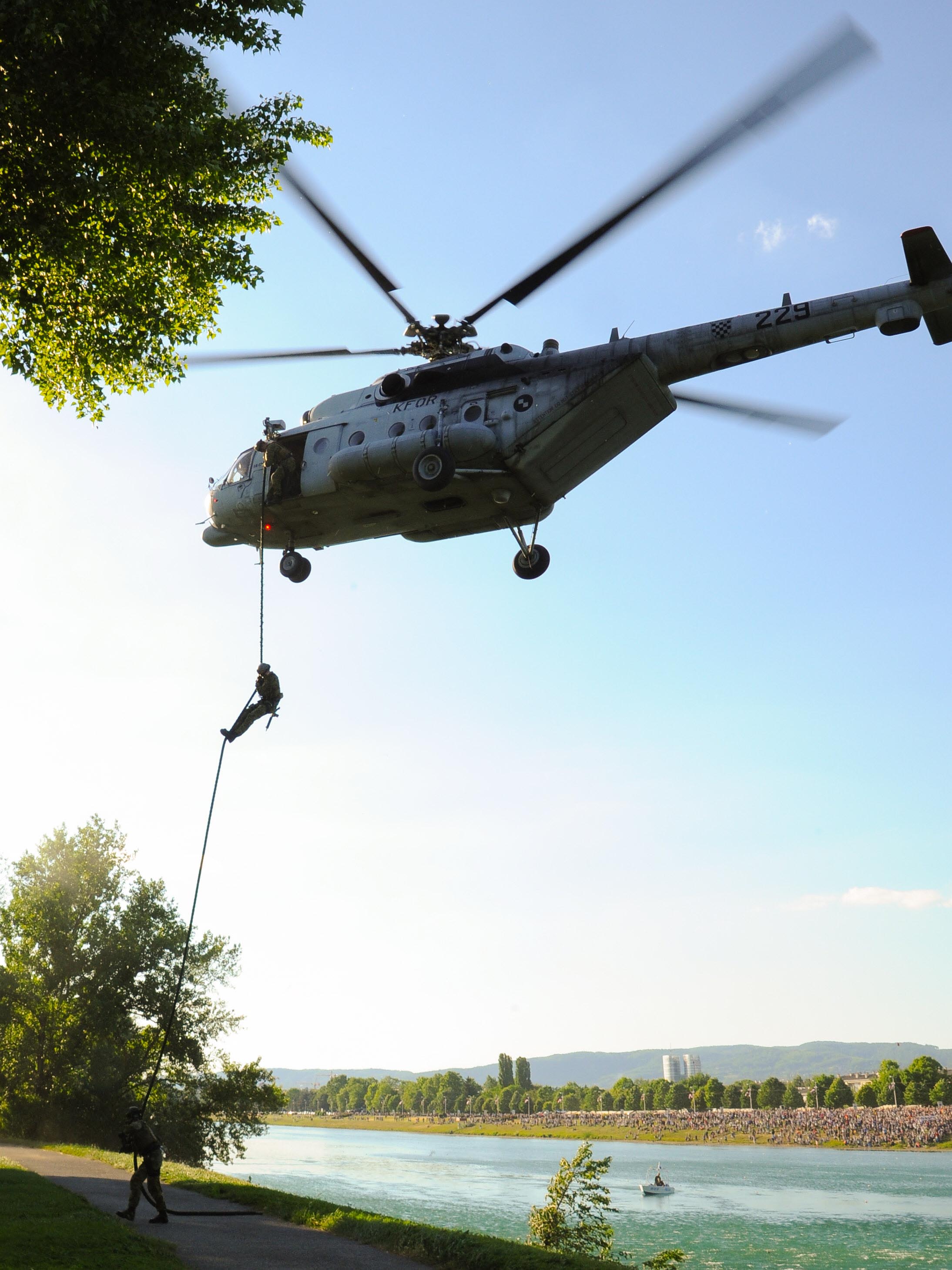 Nakon toga uslijedili su padobranski skokovi koje su izveli pripadnici Zapovjedništva specijalnih snaga koji su iskakali iz helikoptera Hrvatskog ratnog zrakoplovstva i protuzračne obrane Mi-171 SH. Na visini od 1200 m, iz helikoptera je iskočilo pet padobranaca, pripadnika Zapovjedništva specijalnih snaga.