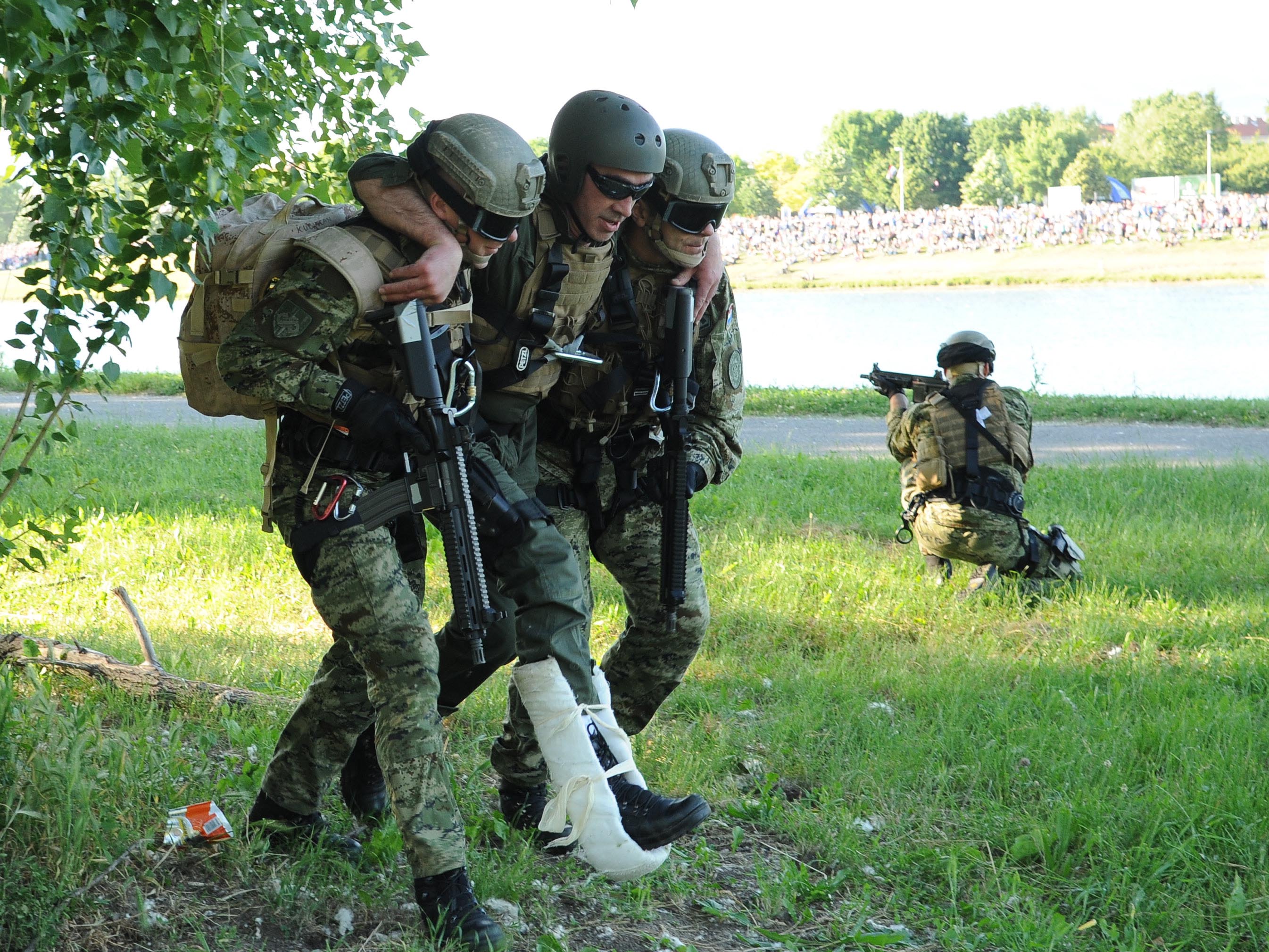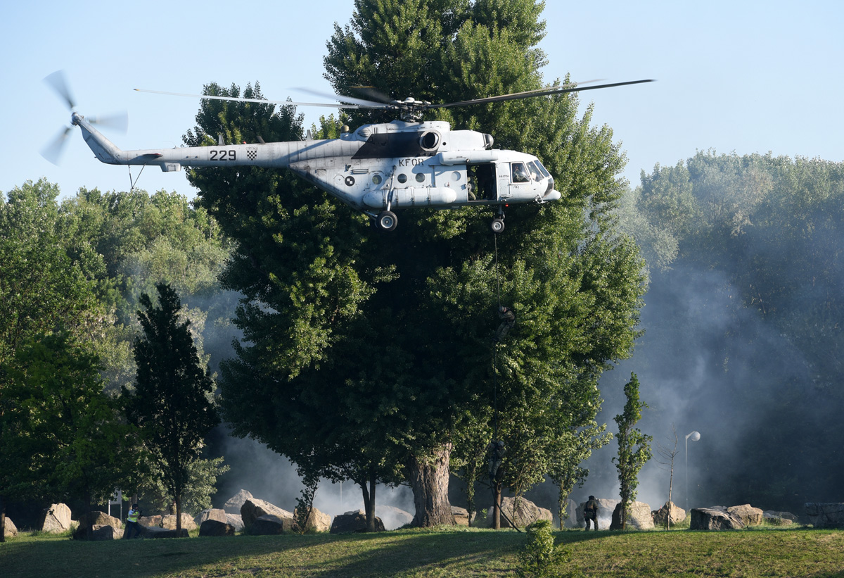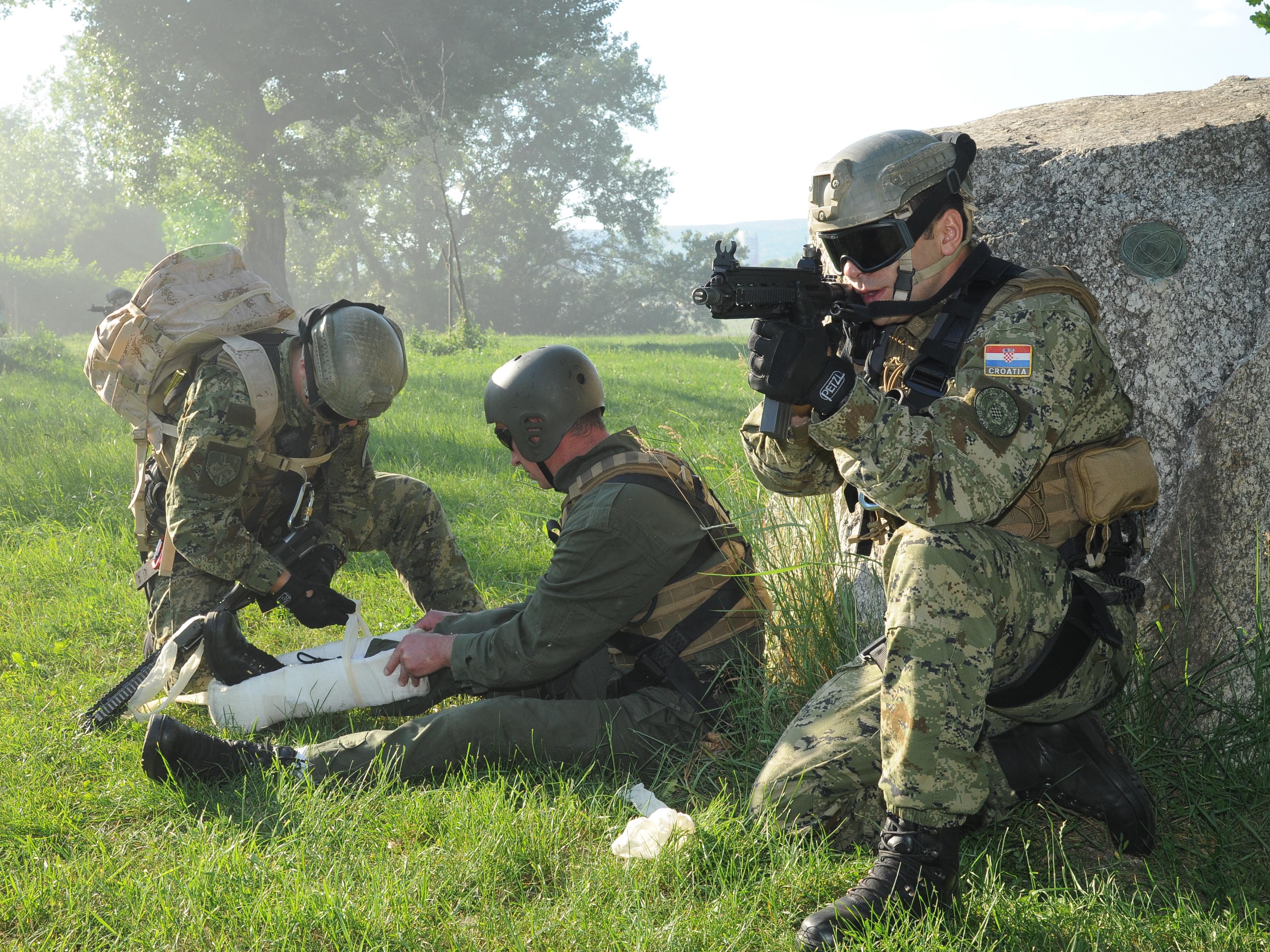 U nastavku programa je na jarunskom poluotoku izvedena pokazna vježba pripadnika Zapovjedništva specijalnih snaga "Borbeno traganje i spašavanje u neprijateljskom području", a prema zamišljenom scenariju, na poluotoku se u neprijateljskom području nalazio pilot Hrvatskog ratnog zrakoplovstva i protuzračne obrane koji je nestao u prijašnjoj akciji. Zadaća namjenskog tima za borbeno traganje i spašavanje Zapovjedništva specijalnih snaga bila je provođenje operacije borbenog traganja i spašavanja s ciljem povrata izoliranog pilota. Bila je to prilika da specijalci, po osposobljenosti i znanjima pripadnici vojne elite, demonstiraju dio svojih vještina: izlazak iz helikoptera tehnikom repelinga uz nošenje naoružanja i opreme, osiguravanje zone za slijetanje, lociranje, medicinsko zbrinjavanje, izvlačenje posebnom tehnikom (tzv. "grozd") i sl. što je gledateljstvo na zagrebačkom Jarunu s napetošću pratilo i pozdravilo čvrstim pljeskom.