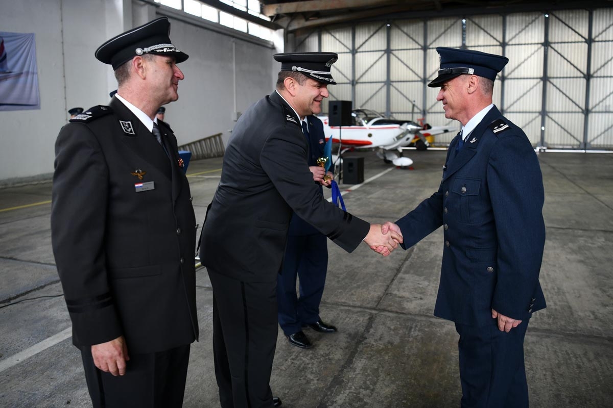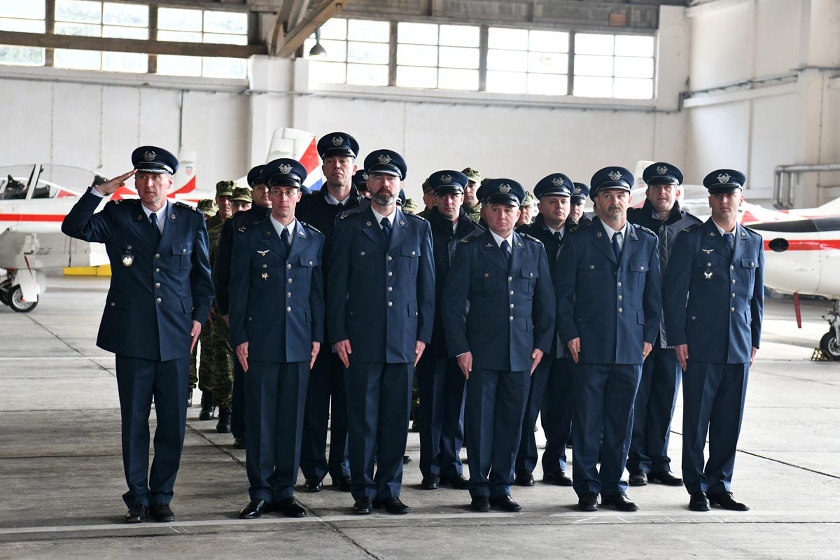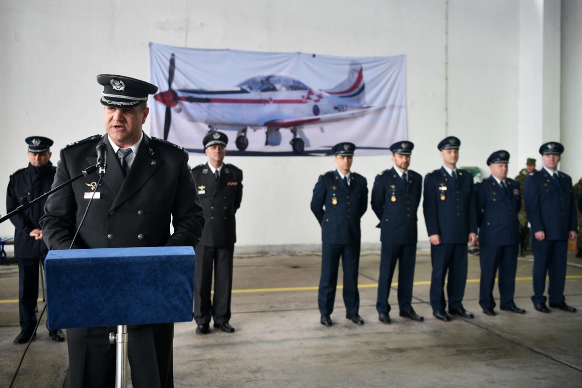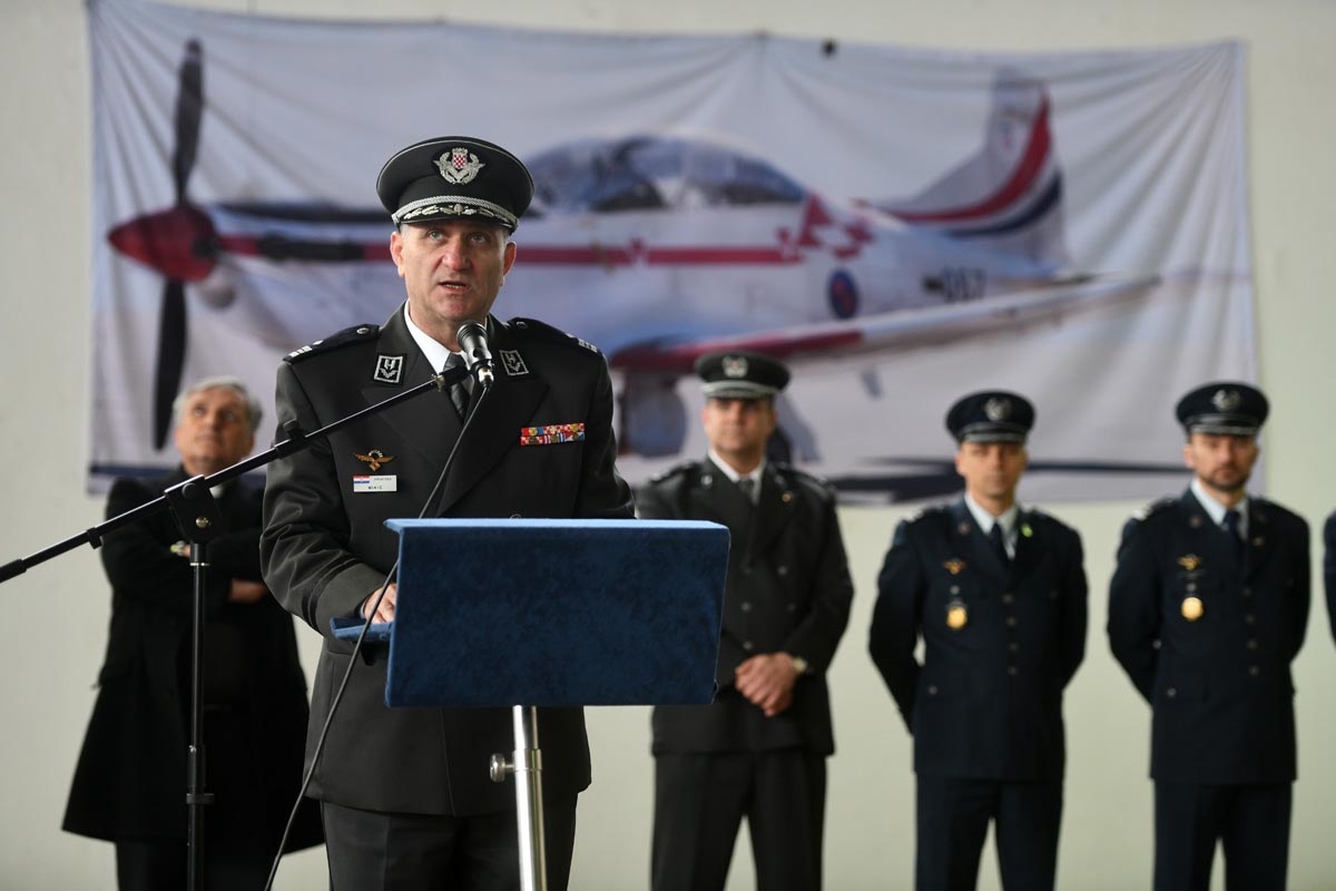 Program je nastavljen u vojarni u Zemuniku postrojavanjem i obraćanjem zapovjednika HRZ-a i PZO-a, brigadnog generala Mate Mikića. General Mikić u svom se govoru osvrnuo na visoki broj pilota koji su se od osnutka baze školovali u njoj, rekavši: "Broj školovanih pilota i zrakoplovnih tehničara najbolji je pokazatelj toga da još uvijek raspolažete potrebnim sposobnostima koje HRZ-u jamče stvaranje kadrova na kojima će se povećavati buduće sposobnosti Zrakoplovstva."