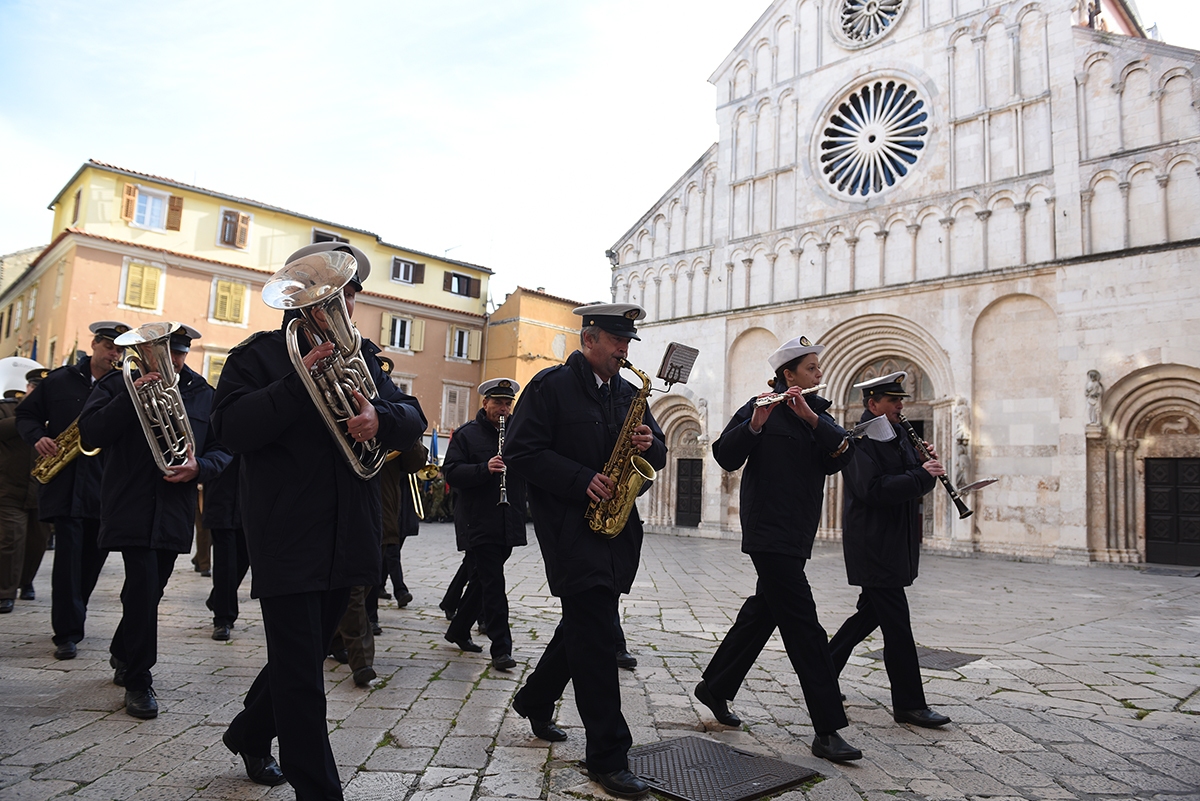 Obilježavanje je nastavljeno mimohodom pripadnika Hrvatske vojske i MUP-a s ratnim zastavama središtem Zadra do crkve svetog Šime gdje je služena misa za Domovinu.