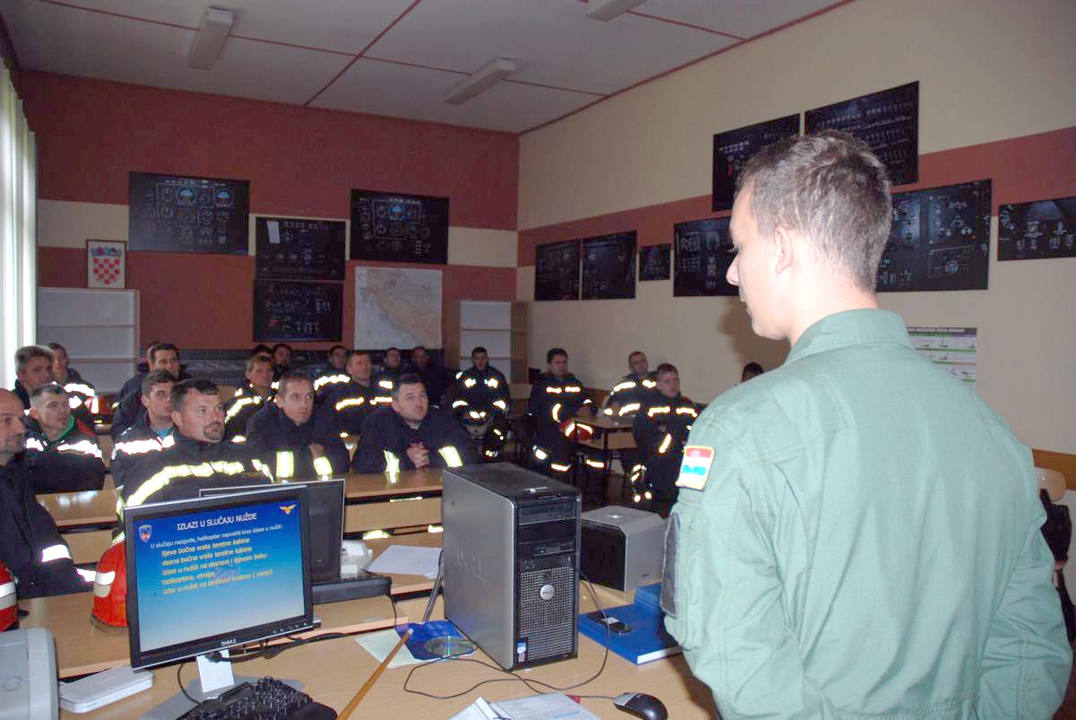 Pripadnici Eskadrile višenamjenskih helikoptera 91. zrakoplovne baze Hrvatskog ratnog zrakoplovstva i protuzračne obrane proveli su danas, 30. listopada 2014., u vojarni "Lučko", obuku za osposobljavanje pripadnika vatrogasnih postrojbi za rad s helikopterom.