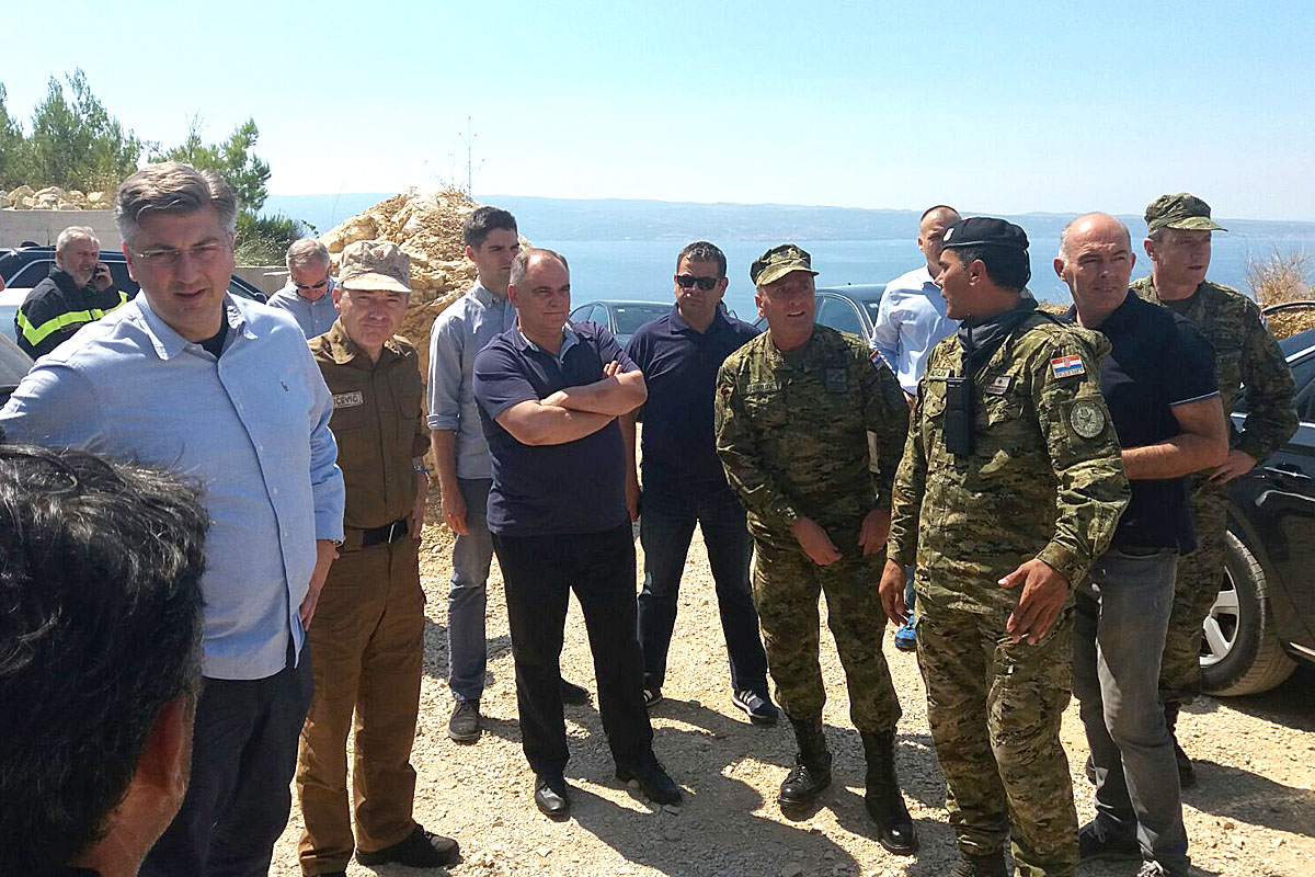 "Požar je prema informacijama koje smo dobili u najvećoj mjeri pod kontrolom. Zahvaljujući potpori Canadaira i Airtractora požar se gasi i lokalizira. Ovo je jedan od 14 požara koji su posljednjih dana izbili u Splitsko-dalmatinskoj županiji. Trenutno je angažirano 150 vozila, 700 vatrogasaca i pripadnika oružanih snaga RH. Nove vatrogasne jedinice pristigle su iz središnje Hrvatske.Vjerujem da ćemo iz ovog požara koji je došao do naselja izvući pouke i unaprijediti mehanizme koordinacije. Odrađen je sjajan posao", istaknuo je predsjednik Vlade Plenković.