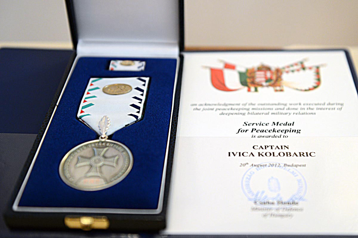 Navedeno odličje uručuje se mađarskim i stranim državljanima za iznimne rezultate pri izvršavanju zadaća u mirovnim misijama i operacijama, a ovom prilikom odlikovan je satnik Ivica Kolobarić, pripadnik Bojne za specijalna djelovanja, te pripadnici Pukovnije vojne policije - časnički namjesnik Josip Grčević, stožerni narednik Petar Maras, narednik Željko Denona, te razvodnik Gordan Gibičar .