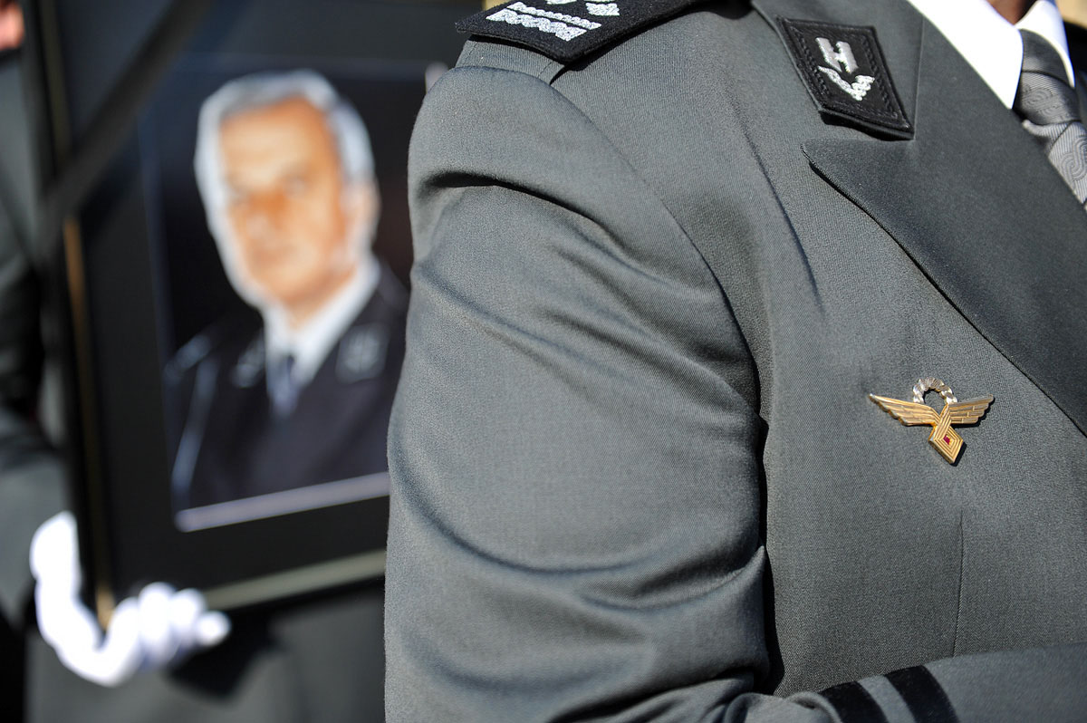 Hrvatska i njene oružane snage, obitelj, rodbina i prijatelji, od generala su se oprostili preletom tri MIG-a i počasnim plotunima u trenucima dok je zapovjednik HRZ-a brigadni general Dražen Šćuri obitelji predavao državni stijeg.