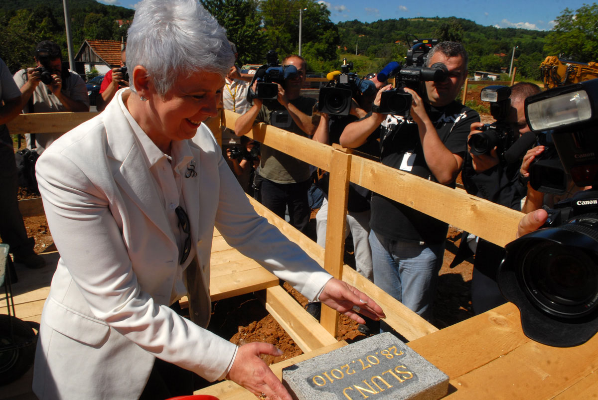 Predsjednica Vlade Republike Hrvatske Jadranka Kosor položila je danas, 28. srpnja u Slunju temeljni kamen za izgradnju stanova za stambeno zbrinjavanje hrvatskih ratnih vojnih invalida iz Domovinskog rata i djelatnika MORH-a. Uz predsjednicu Vlade RH Jadranku Kosor, svečanosti su nazočili i ministar obrane RH Branko Vukelić, ministar obitelji, branitelja i međugeneracijske solidarnosti RH Tomislav Ivić, predstavnici Karlovačke županije i Grada Slunja, te braniteljskih udruga iz Domovinskog rata.