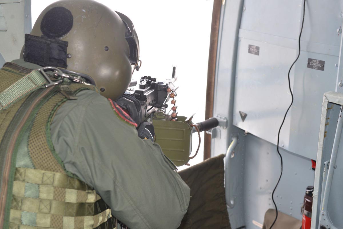 Gađanje je sastavni dio Programa obuke tečaja, a cilj je dostizanje više razine koordinacije posada helikoptera za zajedničko djelovanje pilota, tehničara letača i bočnih strijelaca za savjetodavne zadaće i mentoriranje pripadnika afganistanskog ratnog zrakoplovstva. Proveli su ga bočni strijelci pripadnici OS R Češke i Mađarske iz puško-strojnice M-84 (PKM) iz helikoptera MI-171 Sh na ciljeve na zemlji.