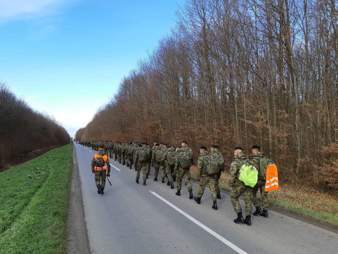 Pripadnici 2. mehanizirane bojne Pume Gardijske oklopno-mehanizirane brigade u srijedu, 12. prosinca 2018., krenuli su iz vojarne 132. brigade Hrvatske vojske u Našicama na hodnju do vojarne 7. gardijske brigade Pume u Varaždinu