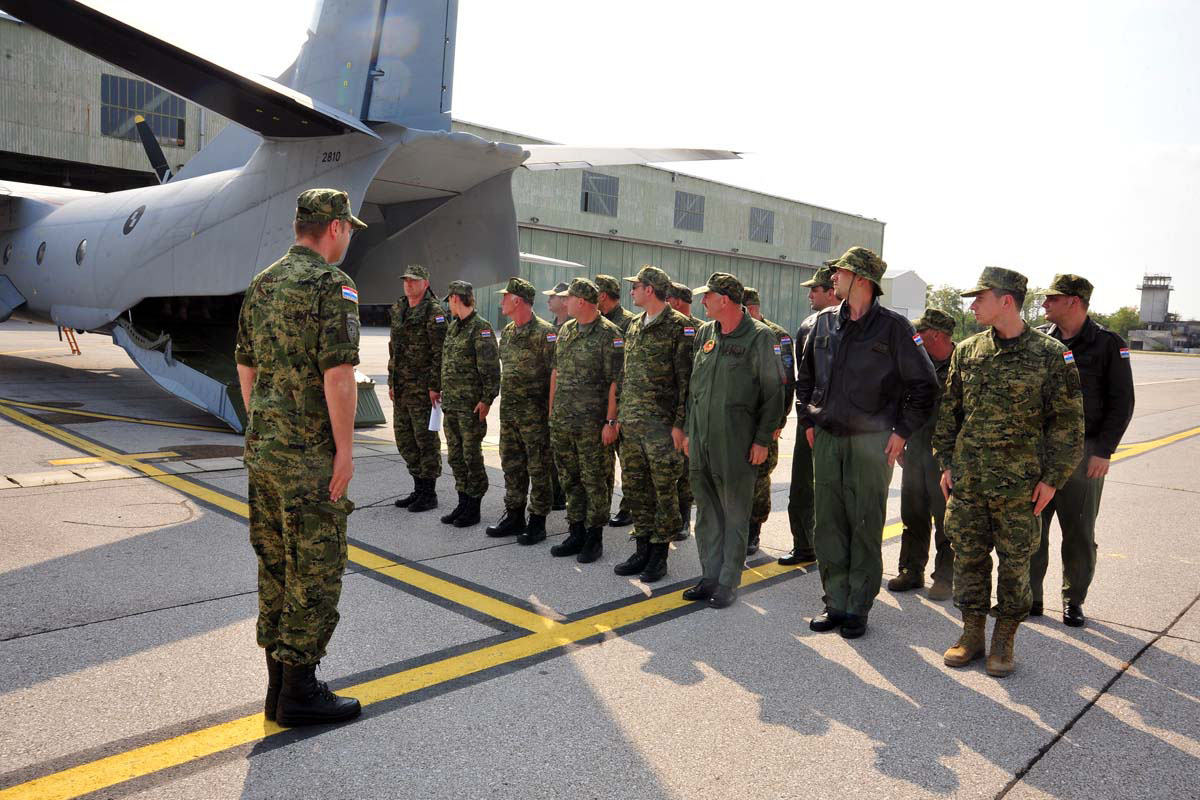 Pripadnike 7. hrvatskog kontingenta u vojarni „Pleso“ dočekali su zapovjednik Zapovjedno operativnog središta brigadni general Vlado Šindler i načelnik stožera Zapovjedništva HRZ i PZO-a brigadni general Ivan Konc.