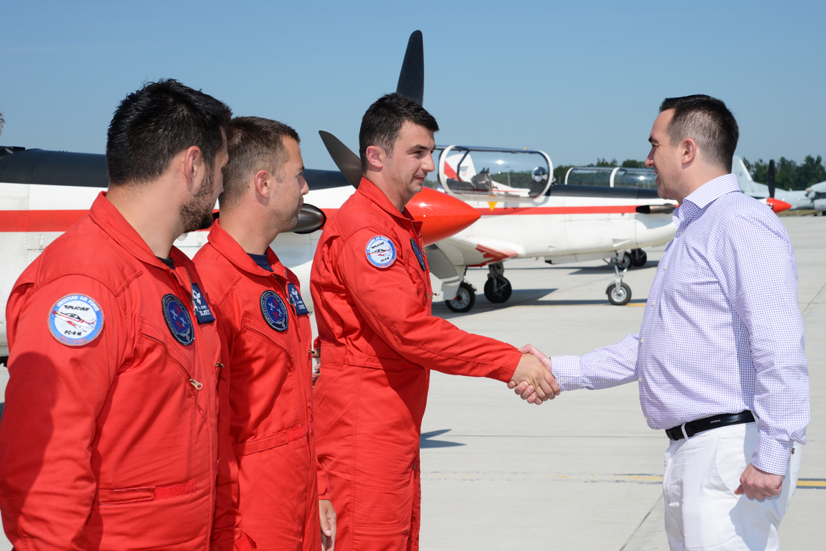 „Došli smo čestitati našim pilotima koji su na najvećem aeromitingu osvojili najprestižniju nagradu. I ovim putem na najbolji mogući način počinjemo proslavu 21., obljetnice vojno redarstvene operacije Oluja, čije ime i nosi akro grupa. Naši piloti pokazuju da hrvatsko borbeno zrakoplovstvo ima budućnost i da se svi trebamo potruditi da ga održimo“, naglasio je ministar Buljević.