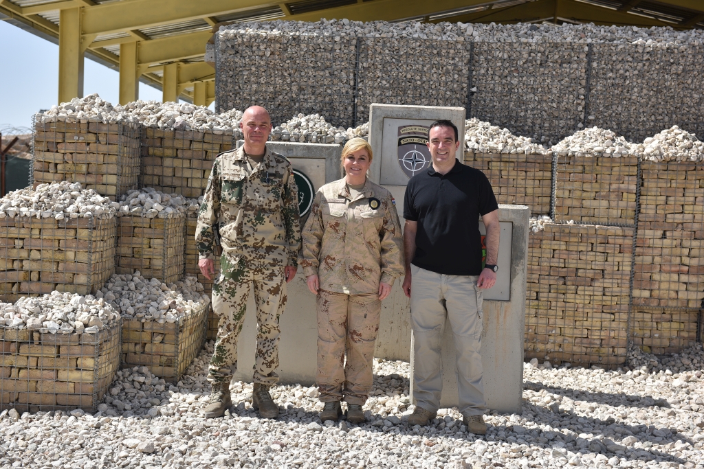 Predsjednici RH Kolindi Grabar Kitarović i ministru obrane Josipu Buljeviću poželio je dobrodošlicu i zapovjednik Zapovjedništva za savjetovanje i potporu Sjever (TAAC-North) njemački brigadni general Hartmut Renk, koji ih je s članovima stožera upoznao s radom i situacijom u području odgovornosti.