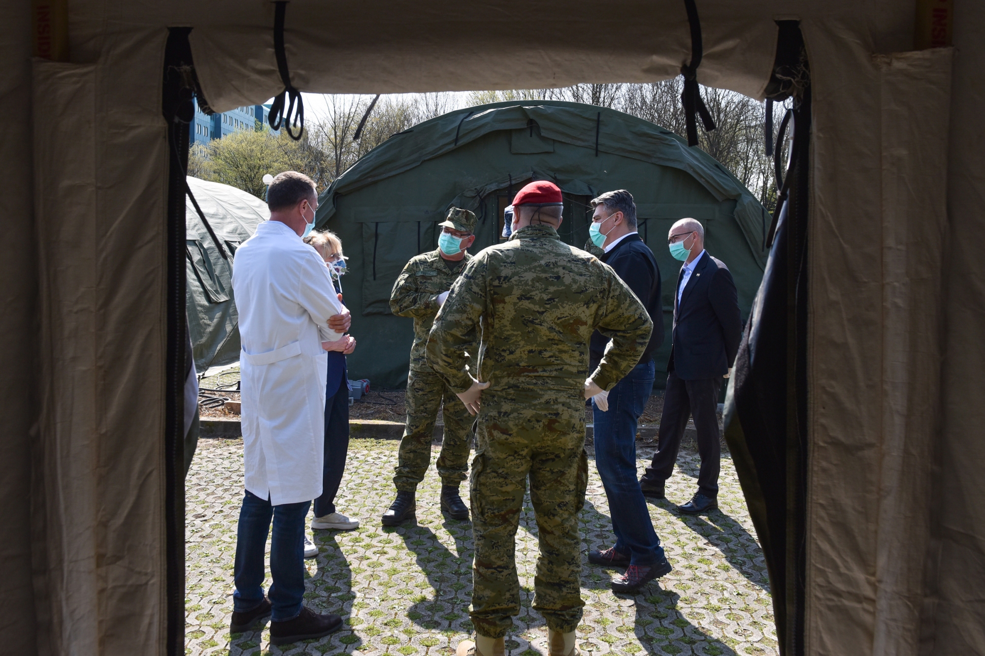 Predsjednik Republike i vrhovni zapovjednik Oružanih snaga Zoran Milanović obišao je u subotu, 21. ožujka 2020. u pratnji potpredsjednika Vlade i ministra obrane Damira Krstičevića i načelnika Glavnog stožera OS RH admirala Roberta Hranja samoodrživi ekspedicijski kamp i šatore koje su za prihvat oboljelih pacijenata podigli pripadnici Hrvatske vojske ispred Kliničke bolnice Dubrava.