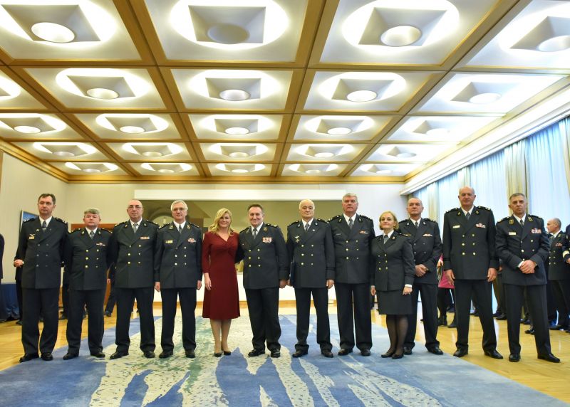 Čestitavši im na uspješnoj i plodonosnoj vojnoj karijeri te časnom i predanom obnašanju dužnosti u Oružanim snagama, predsjednica RH Kolinda Grabar-Kitarović umirovljenim generalima i brigadirima uputila je zahvalu za nesebičan doprinos koji su dali u Domovinskom ratu ali i u razdoblju razvoja i nadogradnje suvremenog sustava obrane Republike Hrvatske.