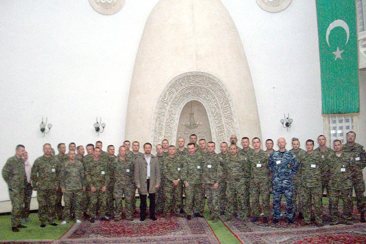 Pripadnici Središta za međunarodne vojne operacije OS RH iz sastava 3. HRVCON-a, u sklopu priprema za odlazak u mirovnu misiju Resolute Support u Afganistanu, posjetili su u četvrtak, 21.svibnja 2015. godine Zagrebačkoj džamiji
