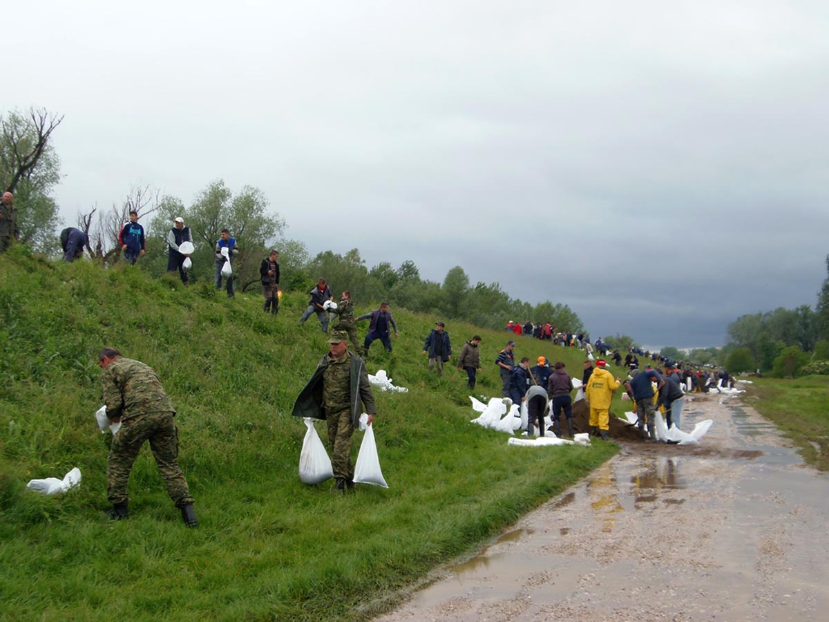 U Brodsko-posavskoj županiji, u Slavonskom Šamcu, jučer su vojnici napunili 800 komada vreća s pijeskom te pojačavali zečje nasipe na rijeci Savi. U mjestu Oriovac, 50 vojnika radilo je na punjenju vreća s pijeskom.