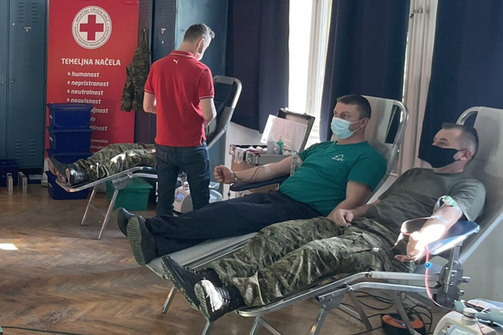Pripadnici 1. oklopno-mehanizirane bojne Sokolovi Gardijske oklopno-mehanizirane brigade Hrvatske kopnene vojske u utorak 8. veljače. 2022. u vojarni “132. brigade HV” u Našicama sudjelovali su u humanitarnoj akciji dobrovoljnog darivanja krvi.