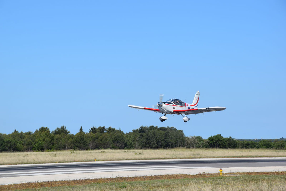 Prvim samostalnim letovima koji uključuju izvedbu po dva školska kruga iznad piste u Zemuniku prethodili su kontrolni letovi ovlaštenih ispitivača letenja nakon završetka temeljne letačke obuku na avionu ZLIN 242 L. Prvi razdjel obuke za desetoricu kadeta obuhvaćao je osnovne elemente u zraku, blage oštre zaokrete, let po školskom krugu sa fazama samostalnog polijetanja i slijetanja, praćenje ostalog zračnog prometa te uvježbavanje svih redovitih i izvanrednih postupaka do razine potpune samostalnosti.