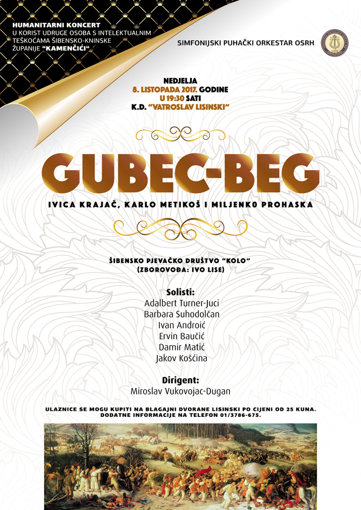 Simfonijski puhački orkestar Oružanih snaga Republike Hrvatske, u nedjelju, 8. listopada 2017., u Koncertnoj dvorani Vatroslava Lisinskog s početkom u 19.30 sati održat će koncert na kojem će izvesti rock operu Gubec-beg Ivice Krajača, Karla Metikoša i Miljenka Prohaske.