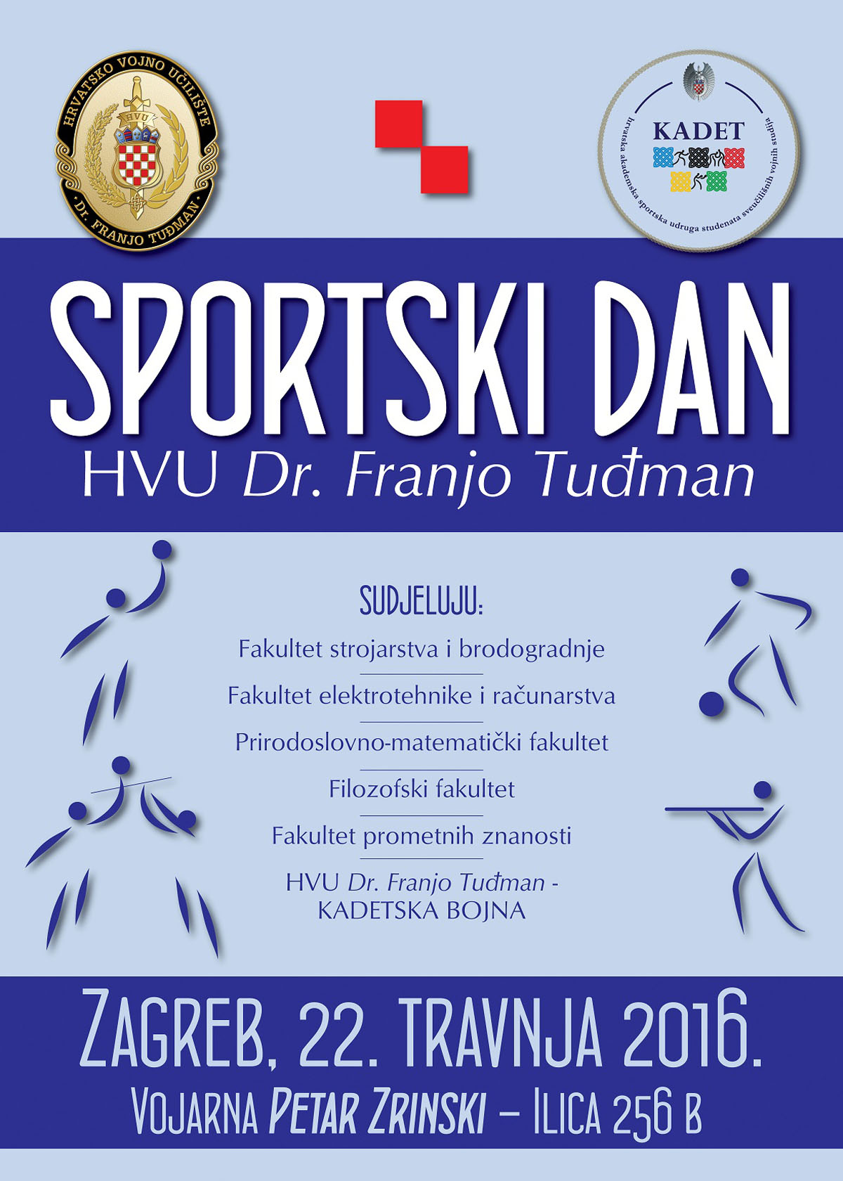 Na Hrvatskom vojnom učilištu "Dr. Franjo Tuđman", u petak, 22. travnja 2016. godine, u vremenu od 9.00 do 16.00 sati održat će se Sportski dan.