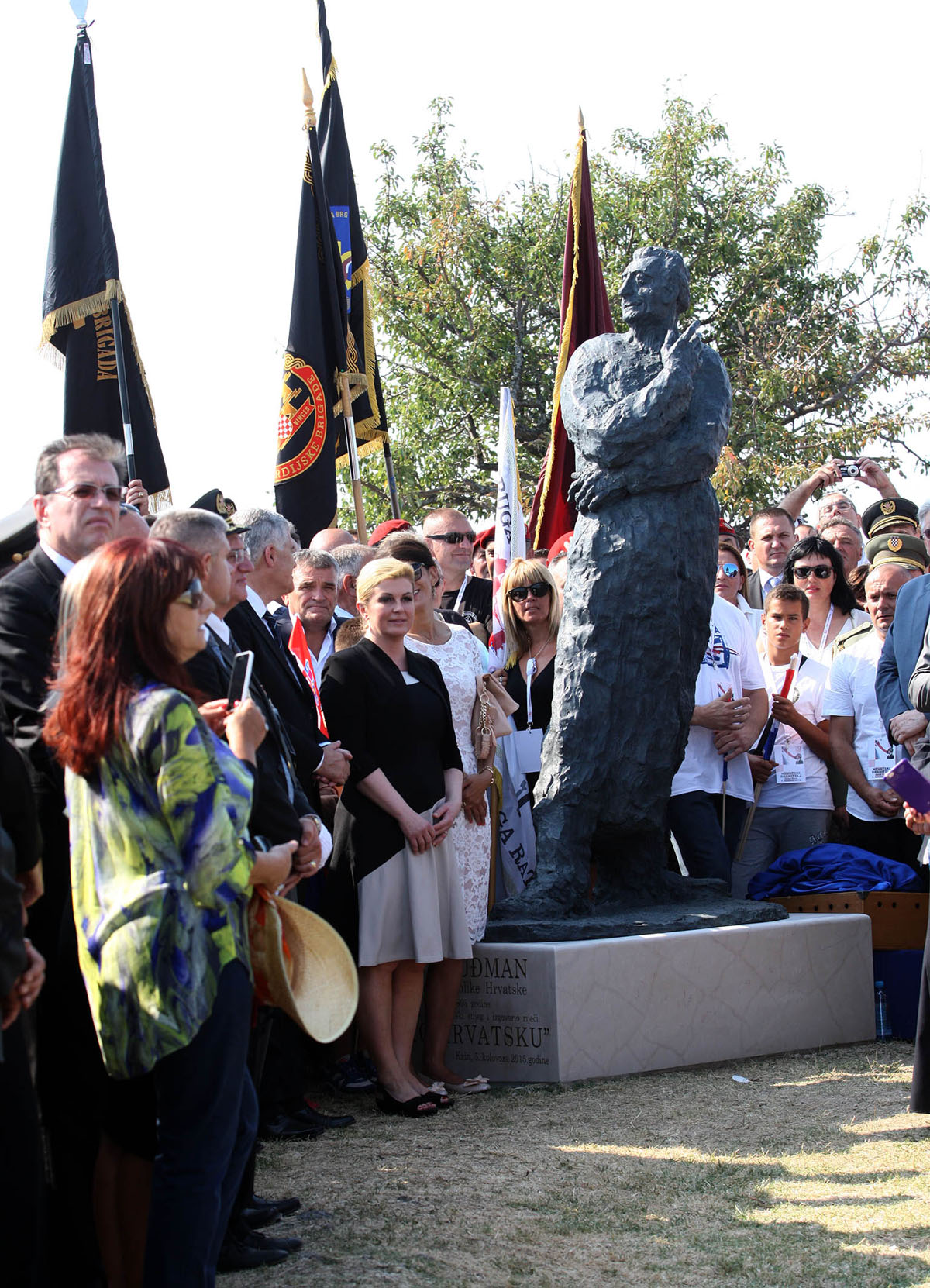 Na najvišem mjestu na kninskoj tvrđavi predsjednica Grabar Kitarović i sin pokojnog predsjednika Miroslav Tuđman otkrili su spomenik prvom hrvatskom Predsjedniku RH dr. Franji Tuđmanu. Spomenik je izrađen od bronce, visok je 2,30 metra, i izraz je kninskog ponosa, slobode, pobjede i slave i spomen je dana koji je označio početak nove povijesti za hrvatski narod. U njegovu postavljanju sudjelovala je i Eskadrila transportnih helikoptera dopremivši je na trenutnu poziciju. Otkrivanje spomenika pratilo je i ispaljivanje 20 počasnih plotuna i pjesma "Stina pradidova" u izvedbi Klape HRM-a "Sveti Juraj", a akrogrupa "Krila Oluje" koja na današnji dan slavi i svoju desetu godišnjicu osnutka, izvela je prigodni letački program.